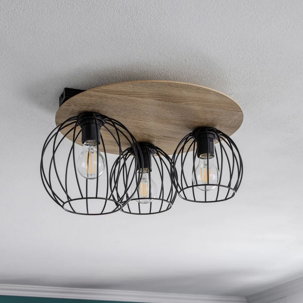 De plafondlamp Malin combineert een modern design met natuurlijke elementen en creëert zo een harmonieuze combinatie van staal, eikenhout en kunststof. De 3-lamps constructie zorgt voor een gelijkmatige verlichting in verschillende woonruimtes zoals de woonkamer, hal, keuken en eetkamer. De combinatie van zwart en licht hout geeft elke ruimte een stijlvolle en tijdloze uitstraling.