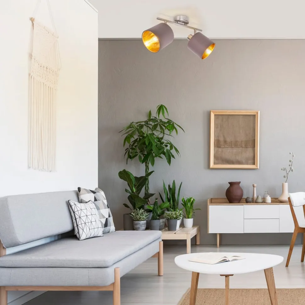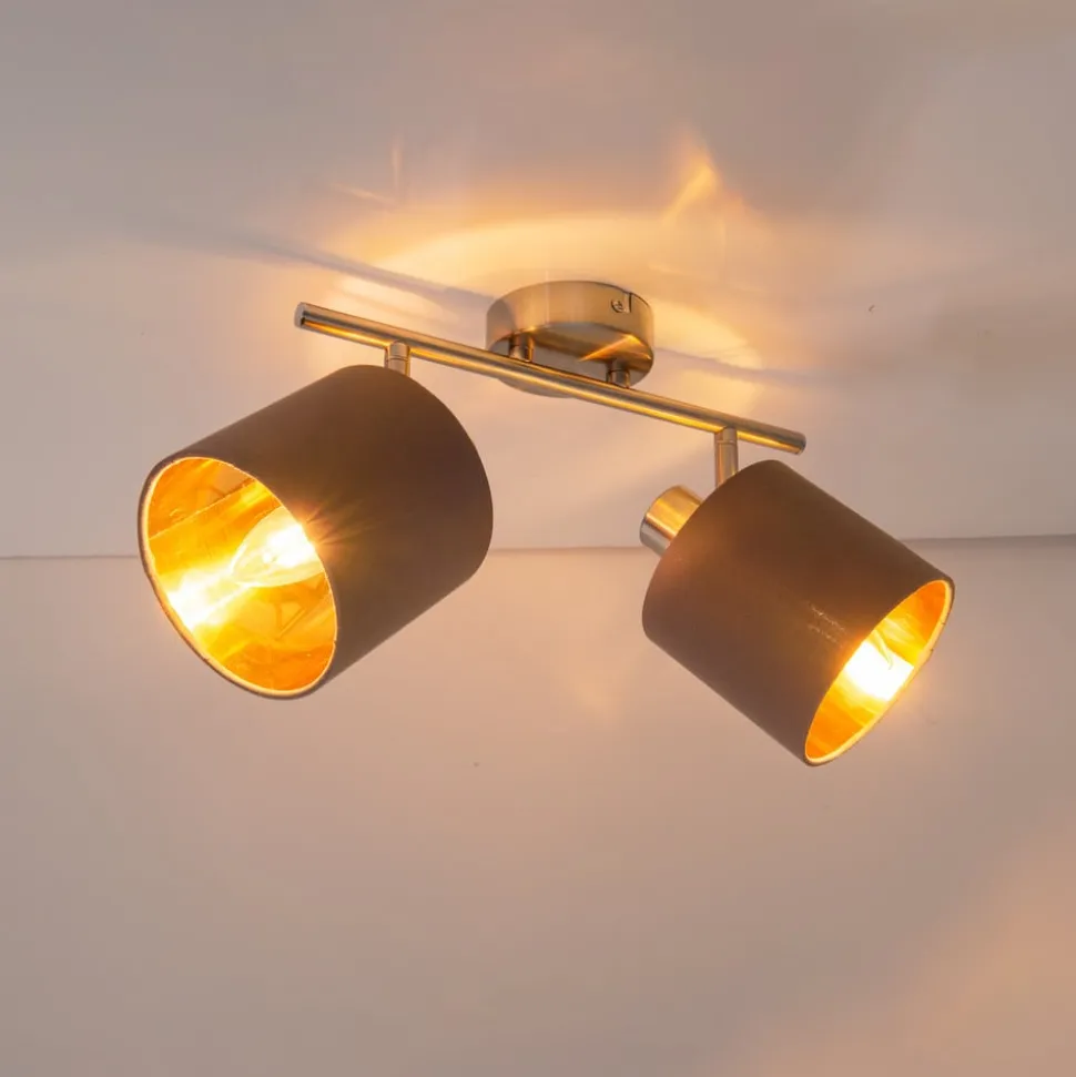 Plafondlamp Maron 2-lamps textiel, bruin/goud