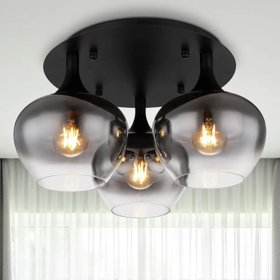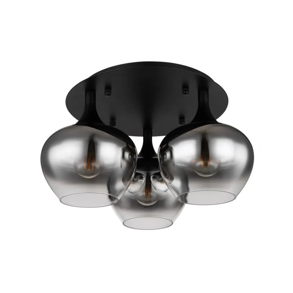 Plafondlamp Maxy, Ø 45 cm, rookgrijs, glas, 3-lamps.