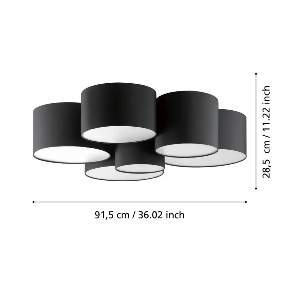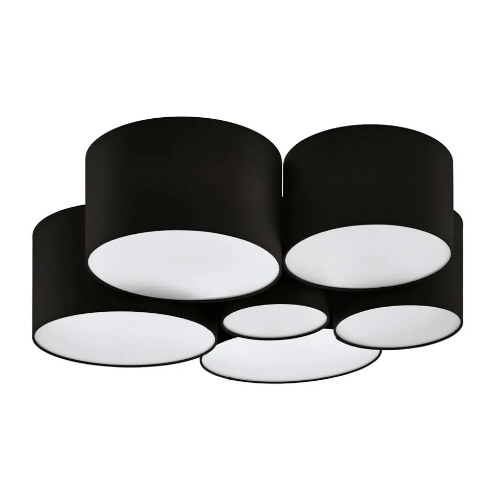 Plafondlamp Pastore 2, Ø 99 cm, zwart, 6-lamps, stof