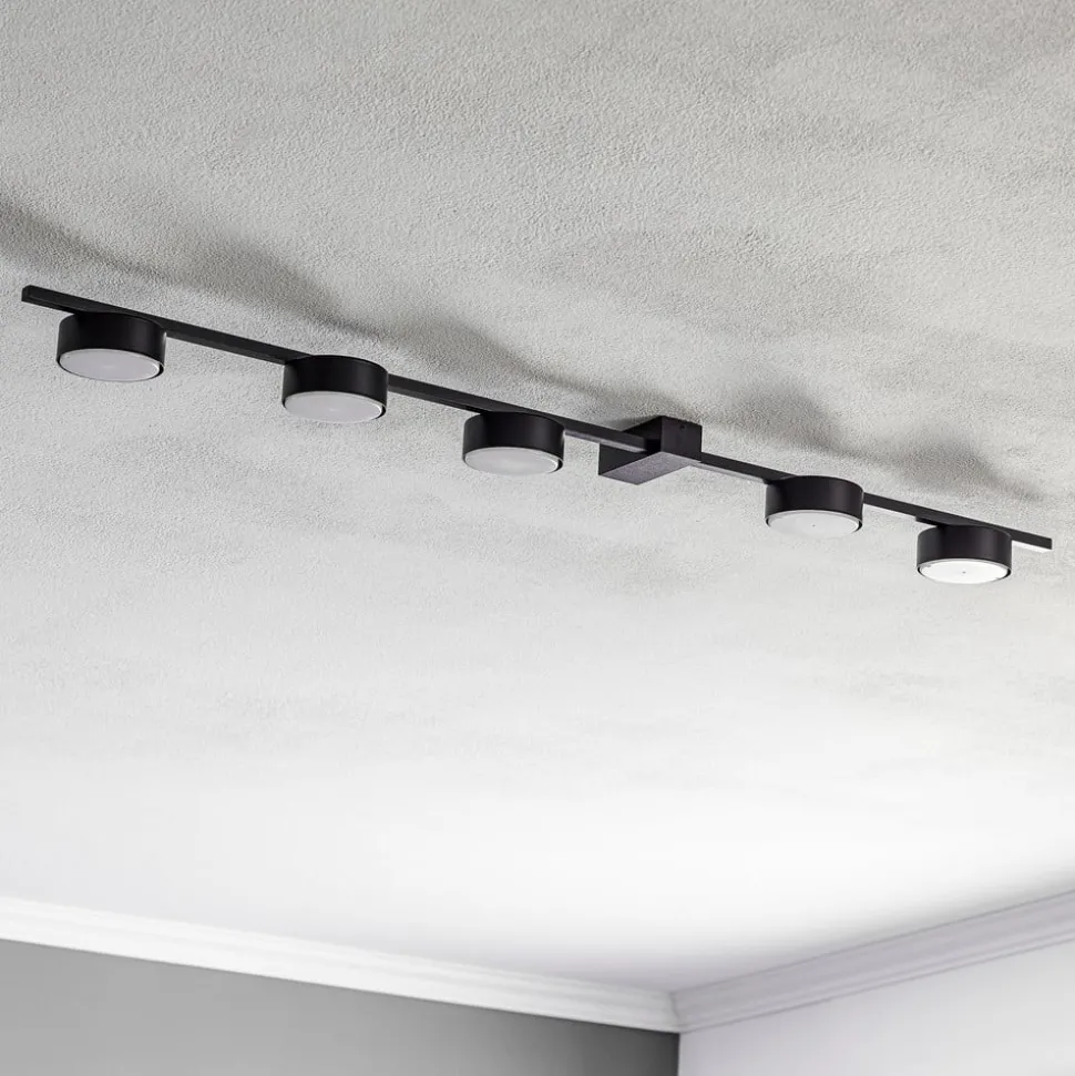De plafondlamp Pills V, gemaakt van hoogwaardig aluminium en staal, belichaamt moderne stijl en tijdloze elegantie. Met zijn 5-lamps constructie zorgt hij voor een gelijkmatige en indrukwekkende verlichting in verschillende woonruimtes zoals de woonkamer, hal, keuken en eetkamer. De zwarte kleur geeft de lamp een elegante en tegelijkertijd discrete uitstraling, die naadloos past in verschillende interieurstijlen.