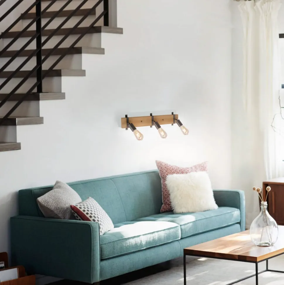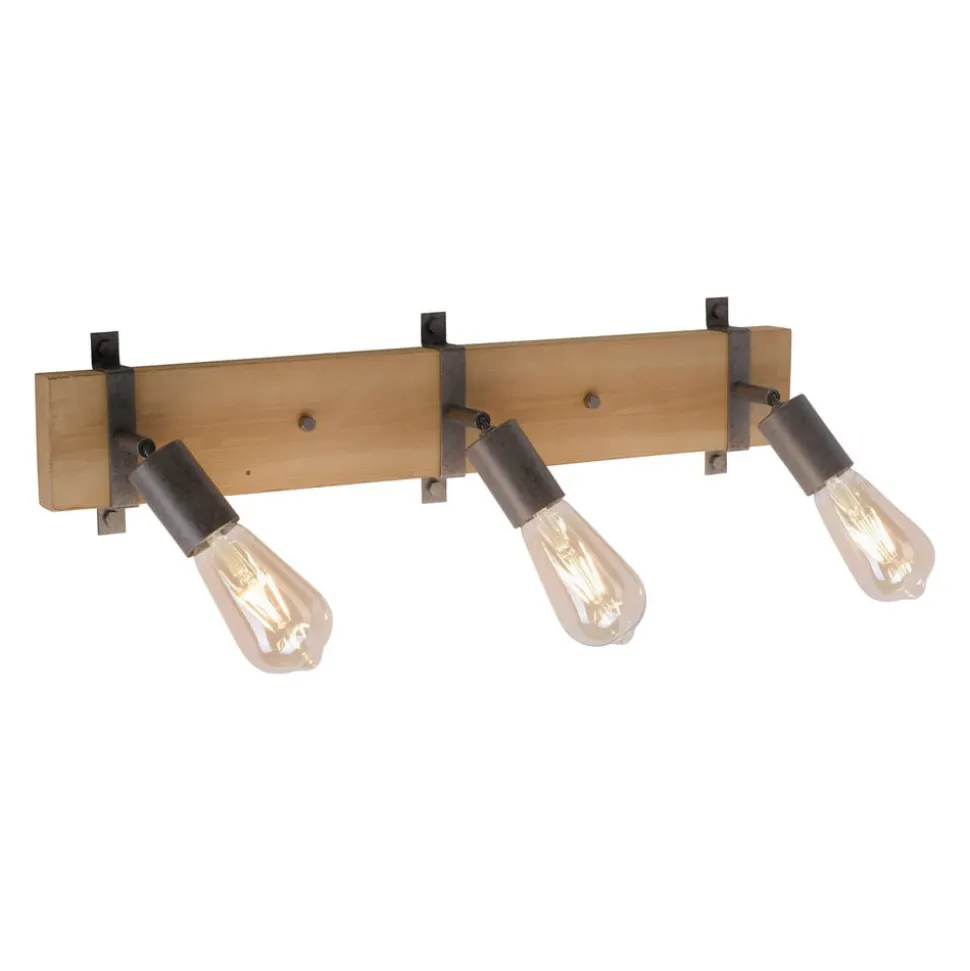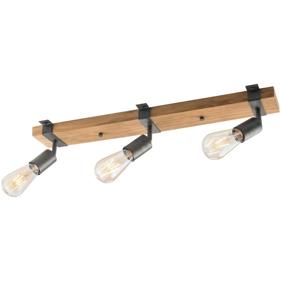 De plafondlamp Slat, uitgerust met drie lichtbronnen, bestaat voornamelijk uit hout – net als een plank vormt de plafondbeugel ook de basis van de lamp. Met ijzeren stutten en opvallende schroefverbindingen worden de houders van de drie contactdozen aan het hout bevestigd. Door het ontwerp en de materialen lijkt de lamel zeer rustiek en aanwezig en legt hij in elke ruimte een passend accent. De drie contactdozen kunnen worden gedraaid en gezwenkt dankzij geïntegreerde verbindingen, waardoor ze individueel kunnen worden aangepast. De plafondlamp kan zowel aan het plafond als aan de wand worden gemonteerd, waardoor de bruikbaarheid nog meer varieert. Door het weglaten van tinten worden decoratieve gloeilampen aanbevolen.