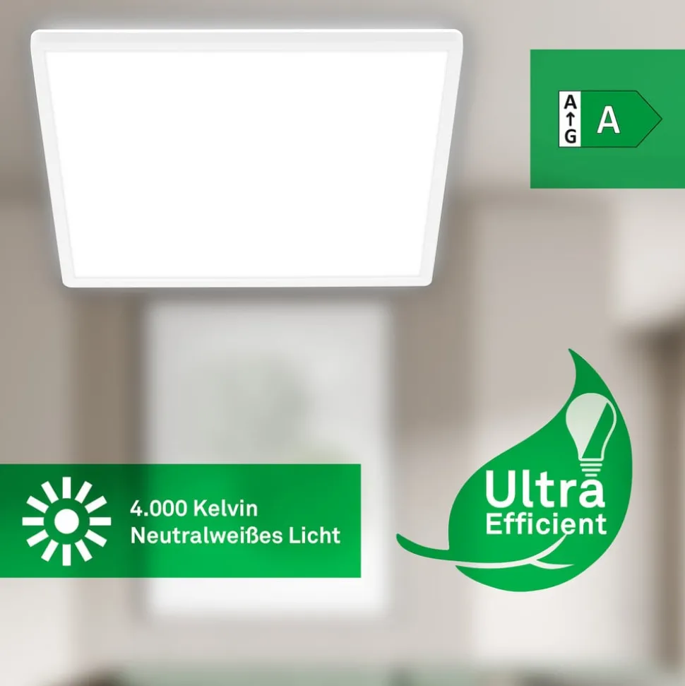 Ultravlakke plafondlamp Tava A LED: lichtbron voor woon- en werkruimten De LED plafondlamp Tava A combineert functionaliteit met een modern ontwerp om verschillende ruimten onder te dompelen in een sfeervolle ambiance. Met haar hoekige vorm en eenvoudige witte kunststof oppervlak past ze naadloos in de esthetiek van woonkamers, gangen, kantoren en kelders. De geïntegreerde LED-lichtbron zorgt voor energiezuinige verlichting die niet alleen de ruimte verlicht, maar ook het welzijn verhoogt en de productiviteit bevordert. Het gebruik van duurzame verpakkingsmaterialen benadrukt het streven naar een verantwoord gebruik van hulpbronnen.