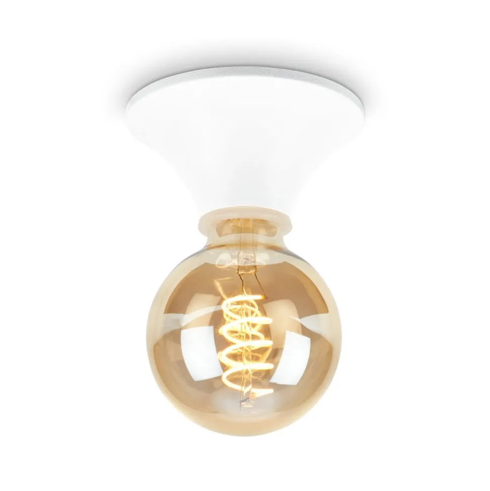 Minimalistisch opbouwarmatuur Tepel met spatwaterbeschermingTepel kan worden gebruikt als plafond- of wandarmatuur en kan niet alleen worden toegepast in droge woonkamers en lounges, maar ook in badkamers en spa’s (IP44). Het minimalistisch-moderne ontwerp van kunststof en metaal in een holle vorm die naar beneden taps toeloopt naar de lamphouder heeft geen kap nodig en kan daarom ideaal worden aangevuld met een decoratieve lichtbron.