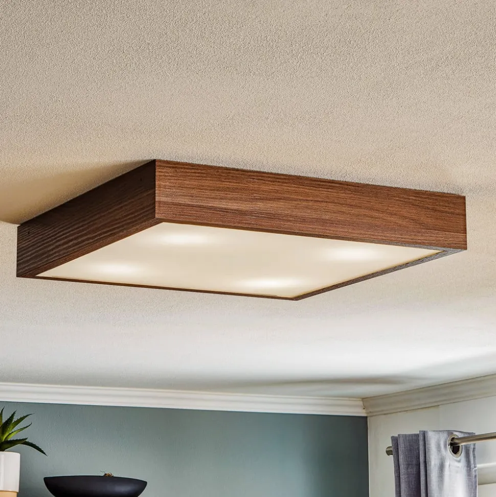 Plafondlamp Tromsö: elegantie en veelzijdigheid door combinatie van hout en glas