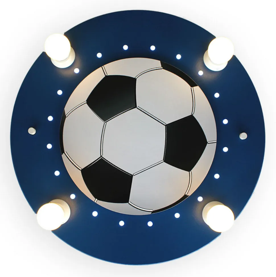 De plafondlamp Football is geschikt als decoratieve verlichting voor elke kinder- en jeugdruimte. In het midden van het ronde armatuur bevindt zich een voetbal, die omgeven is door vier E14-aansluitingen en 20 warmwitte LED’s.
