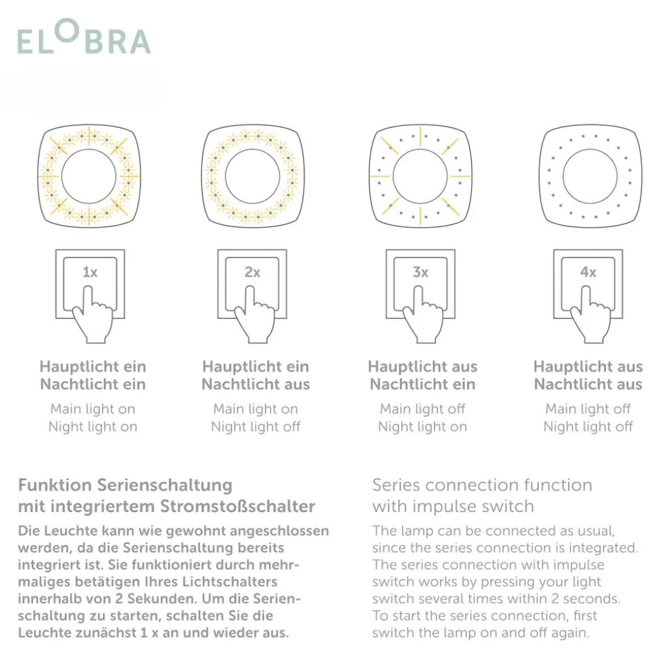 - Serieschakeling; nachtlichtfunctie met 40 lm