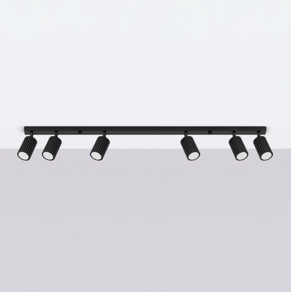 Plafondspot carbon, zwart, lengte 117 cm, aluminium, 6-lamps.