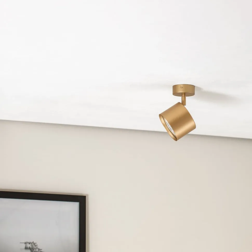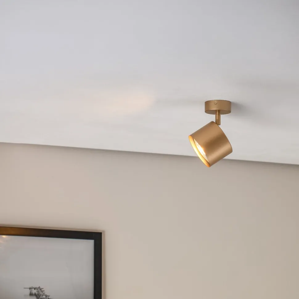 De verstelbare 1-lamp plafondspot Chloe in goud combineert een modern design met functionele flexibiliteit. Deze plafondspot is gemaakt van hoogwaardig staal en valt op door zijn elegante gouden kleur, die elke ruimte een luxe uitstraling geeft. Dankzij de verstelbaarheid kan het licht gericht worden afgestemd op verschillende zones in de woonkamer, keuken, slaapkamer of kinderkamer.