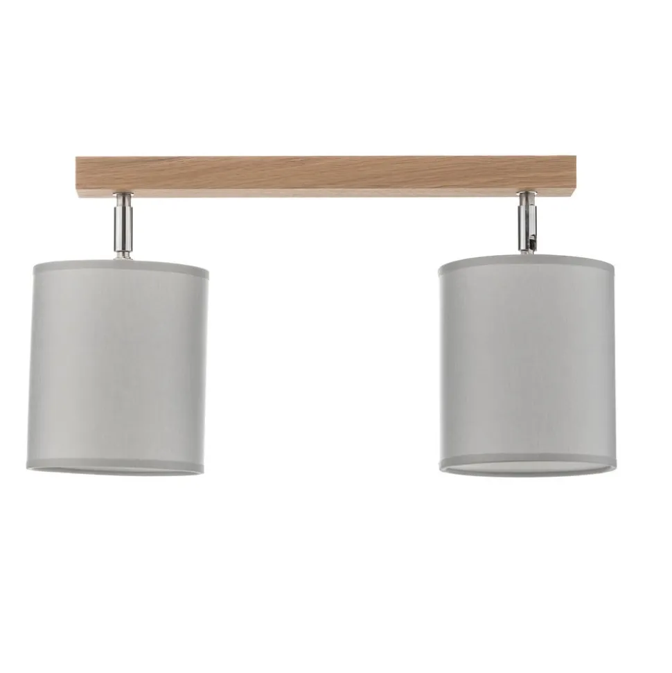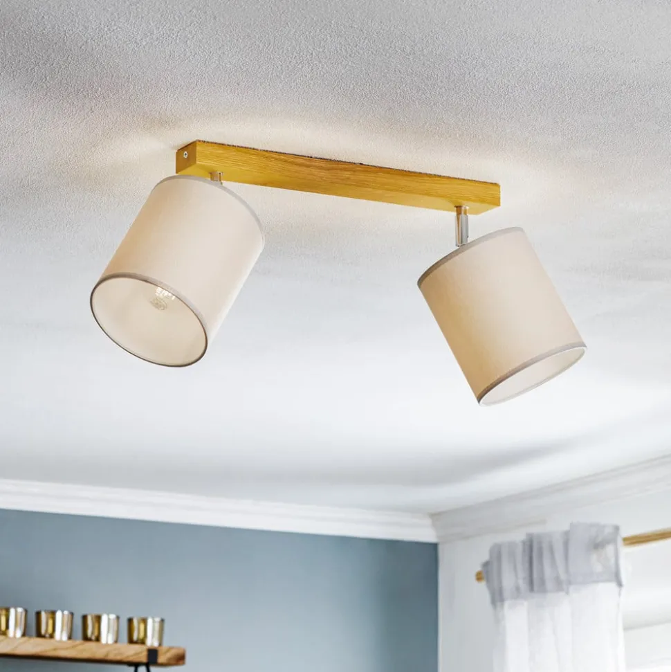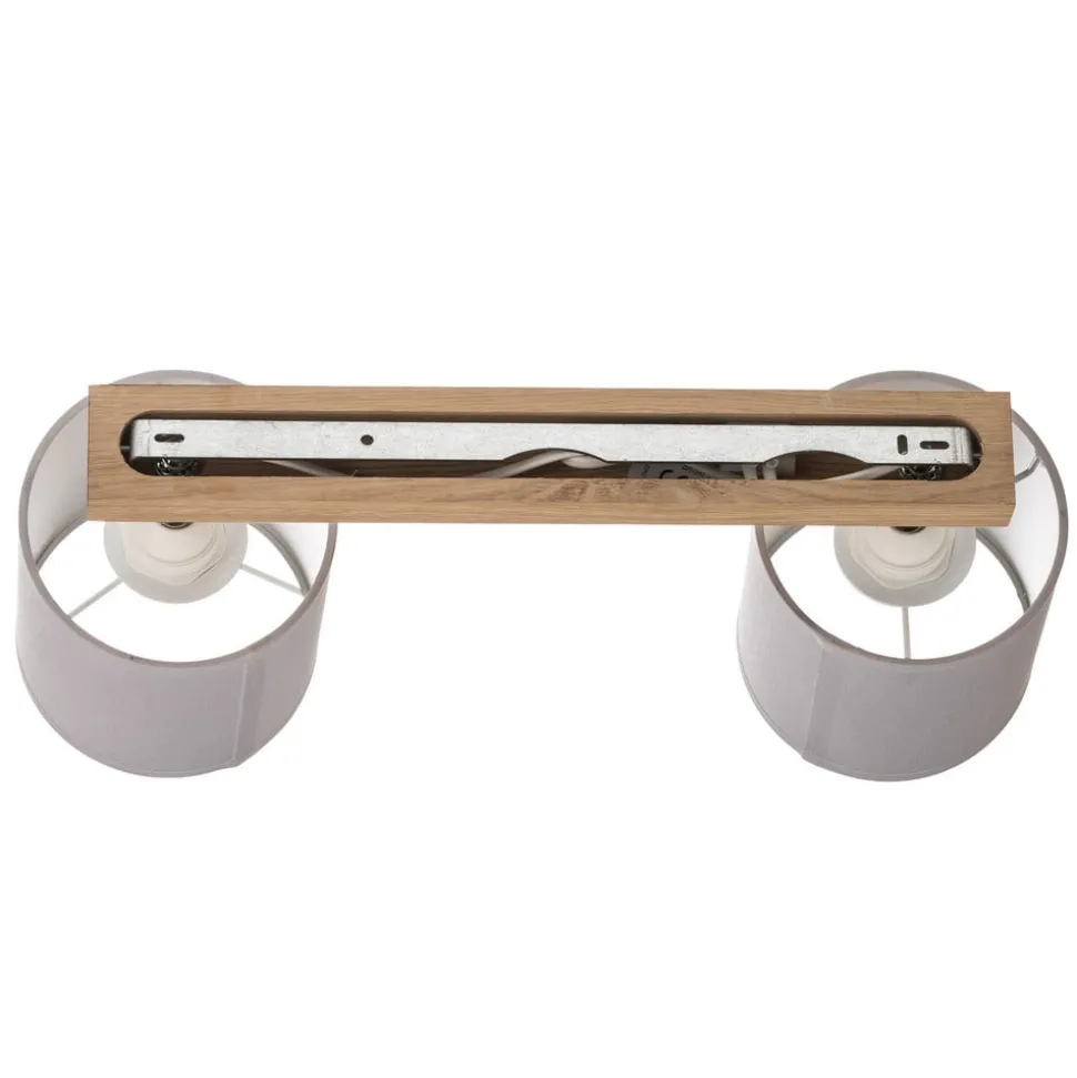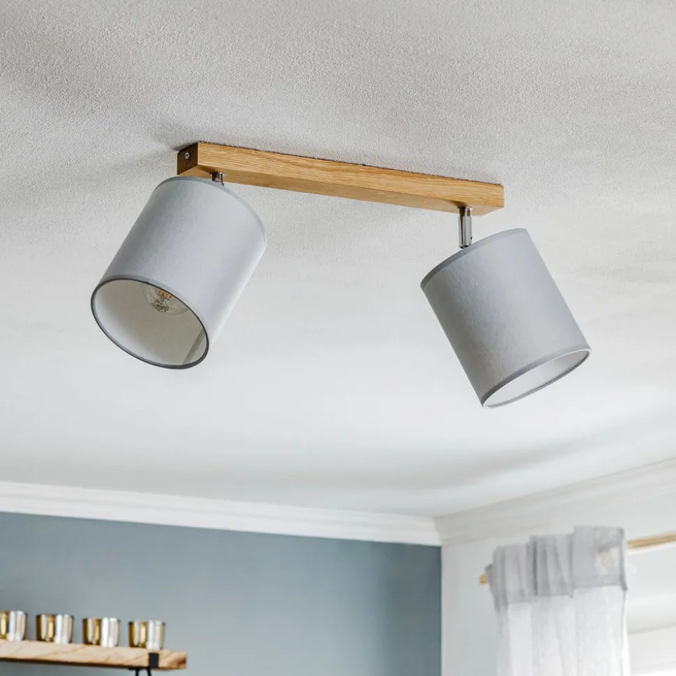 De plafondspot Corralee combineert Scandinavische elegantie met moderne accenten en creëert een harmonieuze sfeer in elke ruimte. De combinatie van grijs textiel en geolied eikenhout geeft de spot een tijdloze esthetiek die zowel in de woonkamer als in de slaapkamer of eetkamer accenten legt. De 2-lamps constructie zorgt voor een gelijkmatige verlichting en benadrukt de strakke lijnen van het ontwerp.