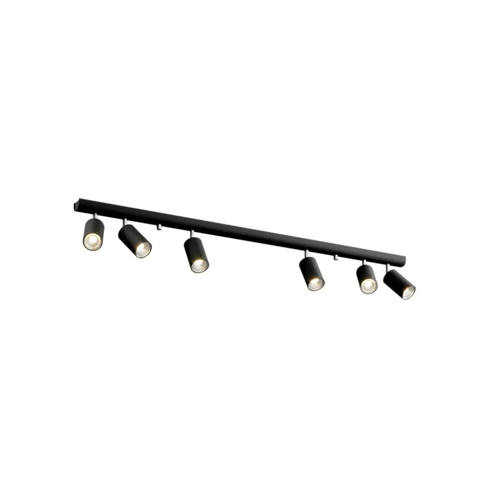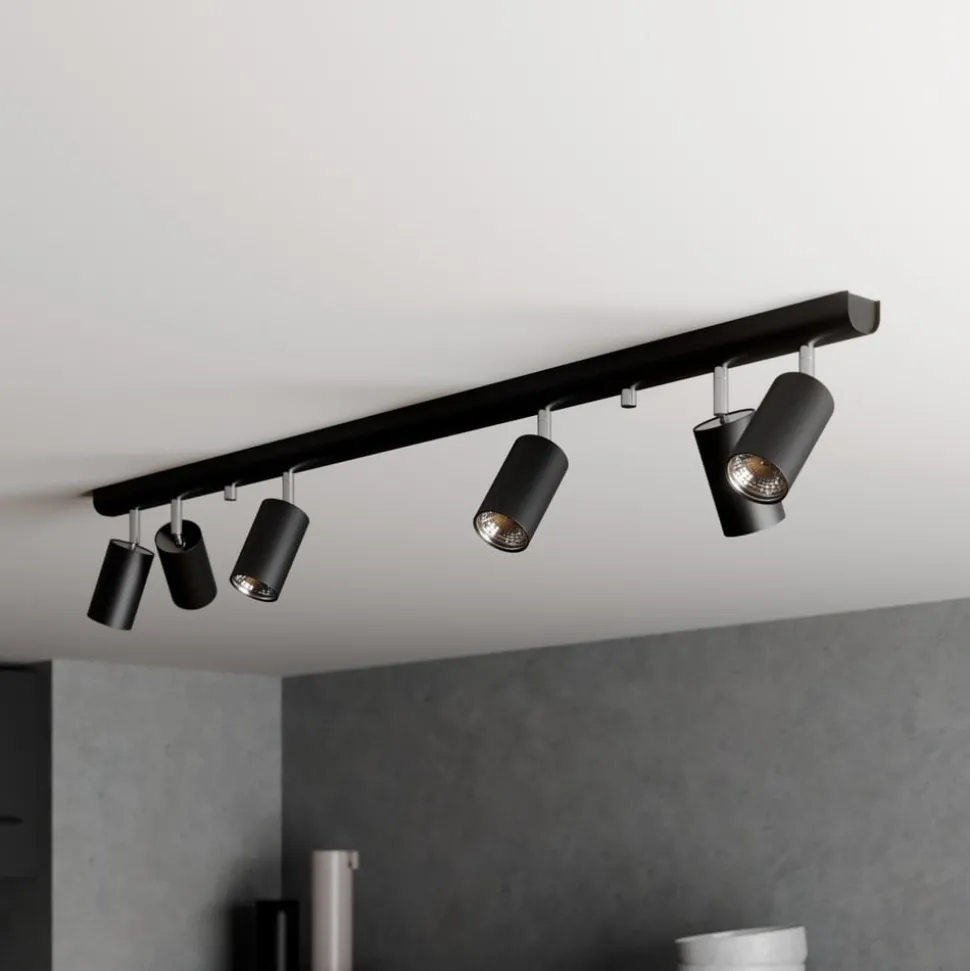 De plafondspot Eye Spot in zwart combineert een modern design met functionele veelzijdigheid. Deze spot is gemaakt van hoogwaardig metaal en past naadloos in verschillende interieurconcepten, of het nu in de woonkamer, hal, keuken of eetkamer is. De 6-lamps constructie zorgt voor een gelijkmatige verlichting en zet stijlvolle accenten in elke ruimte.