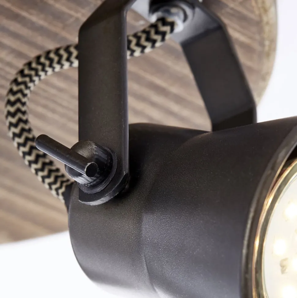 Door de directe montage aan het plafond is de lamp op het eerste gezicht onopvallend, wat ook wordt bevorderd door de donkere kleur. Met de combinatie van hout en zwart staal kan echter elke ruimte een vleugje industriële flair krijgen. Het licht kan ook worden gericht. De spot combineert zo een efficiënte verlichting van de ruimte met een stijlvol woonaccessoire.