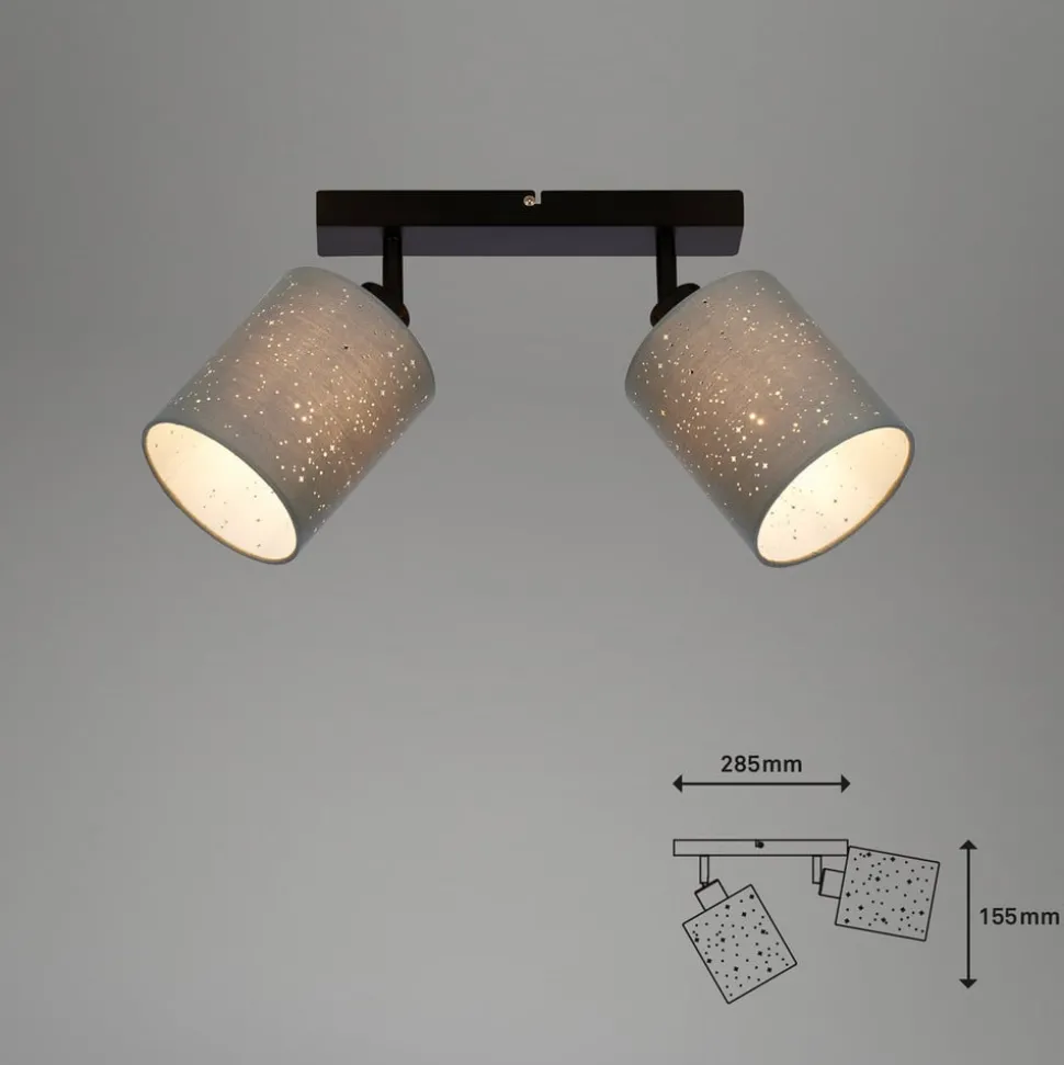 Plafondspot Stofa met sterdecoratie, grijs 2-lamps