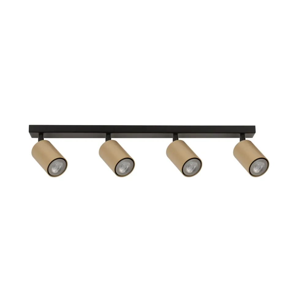 De plafondspot Zoom, 4-lamps, in de stijlvolle kleurencombinatie zwart en goud, combineert modern design met functionele verlichting. Deze spot is gemaakt van hoogwaardig staal en biedt een duurzame en robuuste oplossing voor verschillende woonruimtes, zoals de woonkamer, hal, keuken en eetkamer. De mogelijkheid om de spot te dimmen met een externe dimmer maakt een flexibele aanpassing van de lichtintensiteit mogelijk, zodat verschillende sferen kunnen worden gecreëerd en de ruimte optimaal kan worden verlicht.