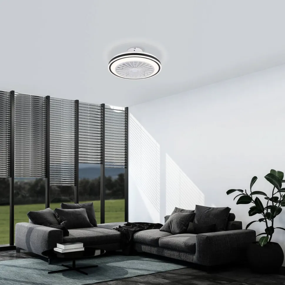 De plafondventilator Almeria combineert de functie van een ventilator en een flexibel instelbare lichtbron. In de ringvormige lamp met melkachtige afdekking zijn LED’s ingebouwd, waarvan de lichtkleur met de meegeleverde afstandsbediening kan worden gevarieerd (2.700 K – 6.500 K) en die ook dimbaar zijn. Ook de ventilator kan flexibel worden ingesteld met de afstandsbediening.