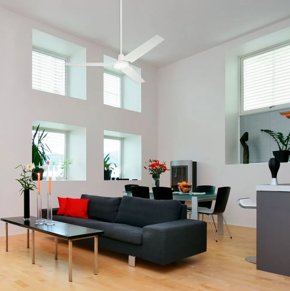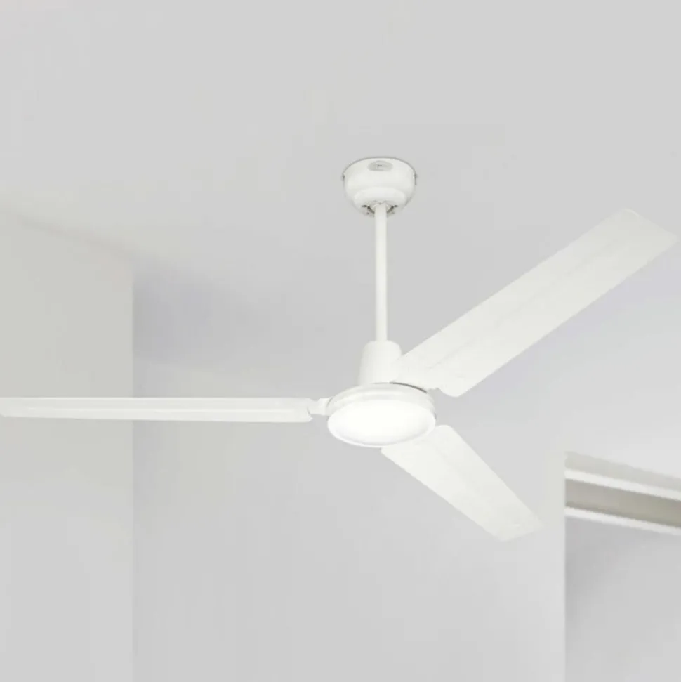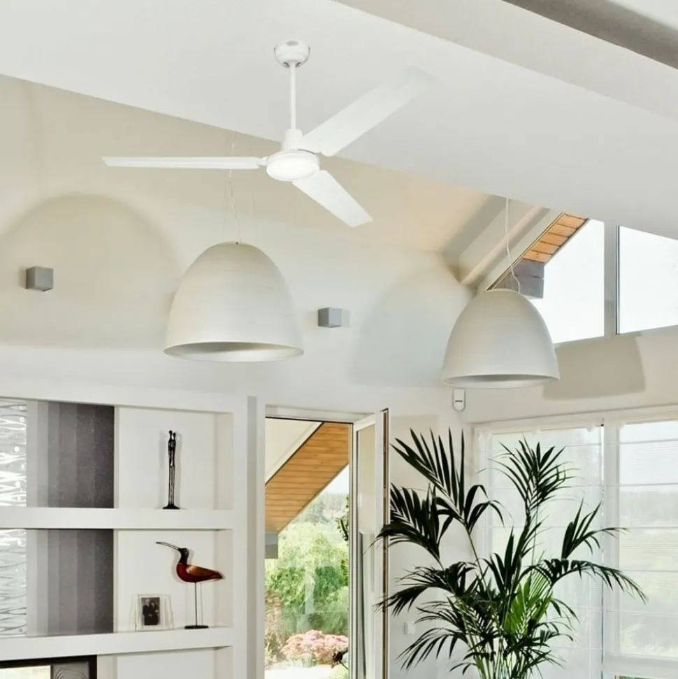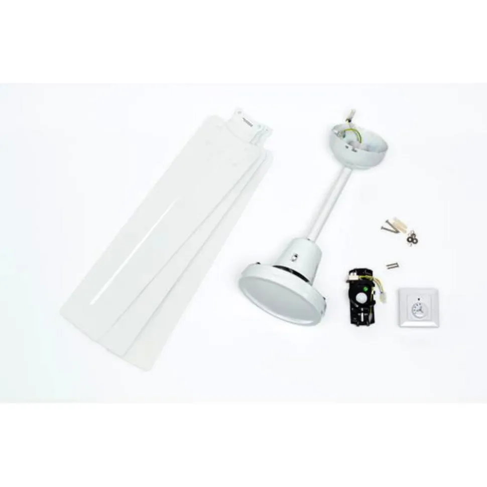 Eenvoudige plafondventilator Industrial zorgt voor frisse lucht Deze praktische ventilator past dankzij het eenvoudige ontwerp moeiteloos in elke omgeving. De plafondventilator Industrial is een echte allrounder. Hij kan niet alleen op warme zomerdagen worden gebruikt, maar ook in de winter. Functies Het geheim van de ventilator is zijn voor- en achterwaartse functie. Zo kan hij enerzijds voor frisse lucht zorgen en anderzijds de warme verwarmingslucht gelijkmatig in de kamer verdelen. Dit laatste betekent dat de industriële plafondventilator perfect is voor spaarders. De ventilator is uitgerust met vier verschillende snelheidsniveaus voor een ideale aanpassing. Technische gegevens Snelheden: 90, 150, 210 of 250 tpm Speciale kenmerken De ventilator werkt zeer stil en is daarom ook perfect voor gebruik in de studeer- of slaapkamer. De ventilatorsnelheid kan eenvoudig worden geregeld met een meegeleverde wandschakelaar. Afstandsbedieningen kunnen achteraf worden gemonteerd (zie accessoires); het is niet mogelijk om de wandschakelaar en afstandsbediening tegelijk te gebruiken, er kan slechts één bedieningsoptie tegelijk worden geïnstalleerd.