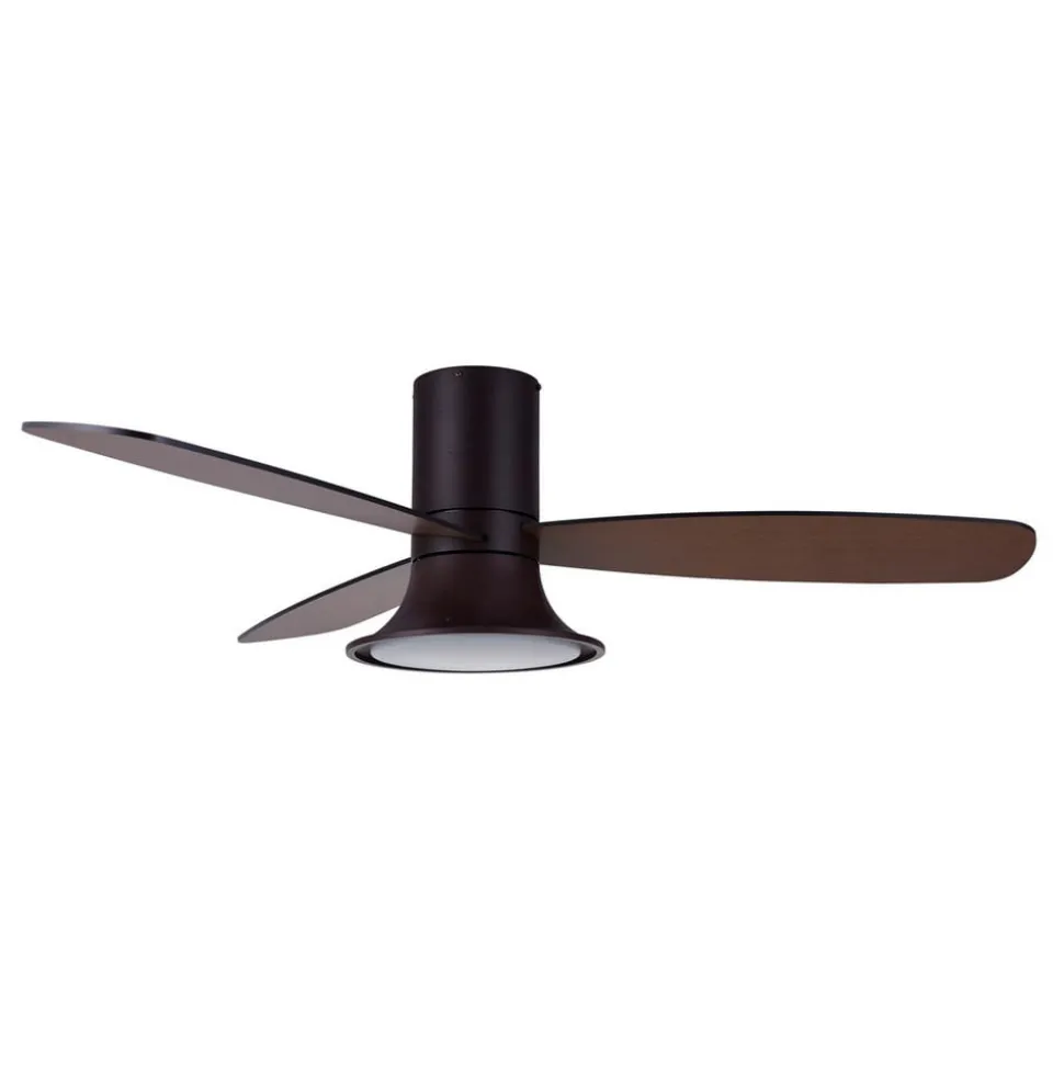 Met zijn moderne design past de plafondventilator Flusso LED bij vele inrichtingsvarianten. De drie bladen zijn gemaakt van gelakt hout en kunnen worden gedraaid. Dimbaar LED licht geïntegreerd. Incl. LED-lamp (GX53 voet).
