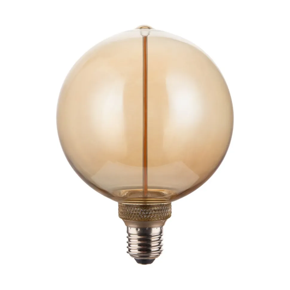 Dimbare E27 Edge-glaslamp met 2 W, 1.800 K, amber Deze LED-lichtbron in G125-formaat is ideaal voor decoratieve toepassingen. Hij is uitgerust met een amberkleurig getint glazen lampje met een futuristisch ogende, rechte lichtgeleider binnenin. Het extra warmwit licht kan indien nodig worden gedimd.