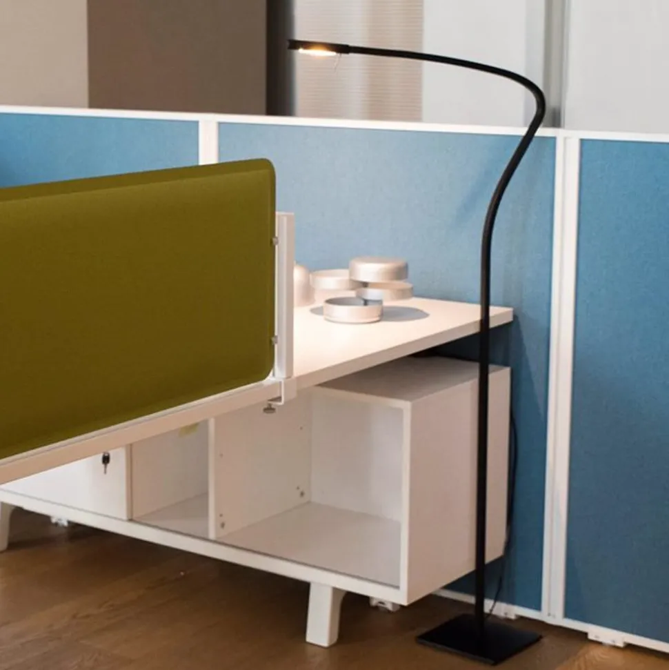 Het doorslaggevende kenmerk van de zwarte Paraph F3 LED vloerlamp is de flexibele arm, die vrij gedraaid en gebogen kan worden. Dit maakt elke denkbare oriëntatie mogelijk, zodat de warmwitte LED’s op het werkvlak of naar de muur of het plafond kunnen worden gericht. Een vlakke, vierkante basis zorgt voor de nodige stabiliteit. Om de lichtopbrengst te regelen is de Paraph F3 uitgerust met een dimschakelaar. De staande armatuur is de ideale lichtbron voor privé- en openbare lounges en werkplekken, bijvoorbeeld het thuiskantoor of de bibliotheek.