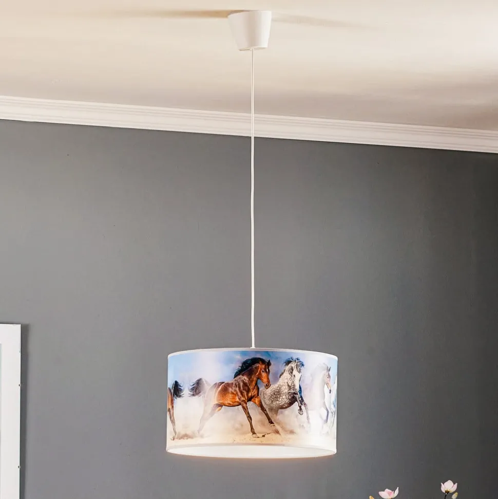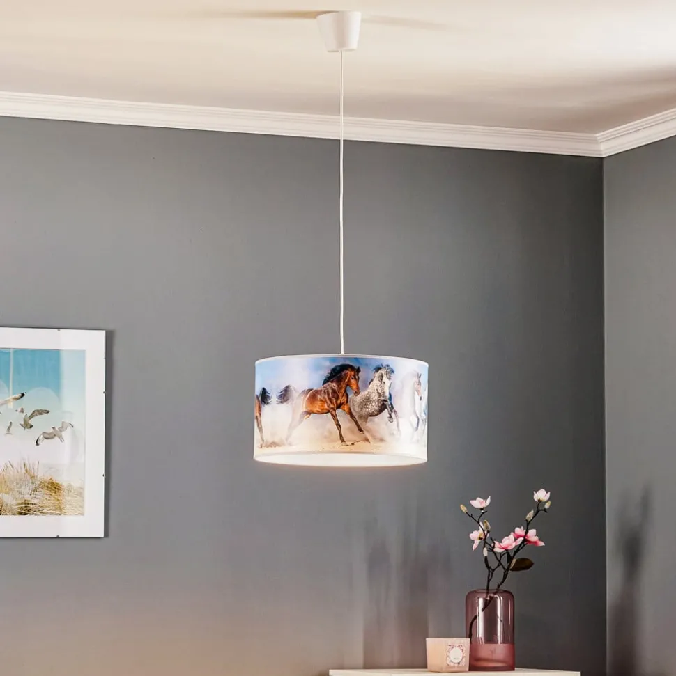 Print hanglamp Horses: kleurrijk design voor moderne woonruimtes