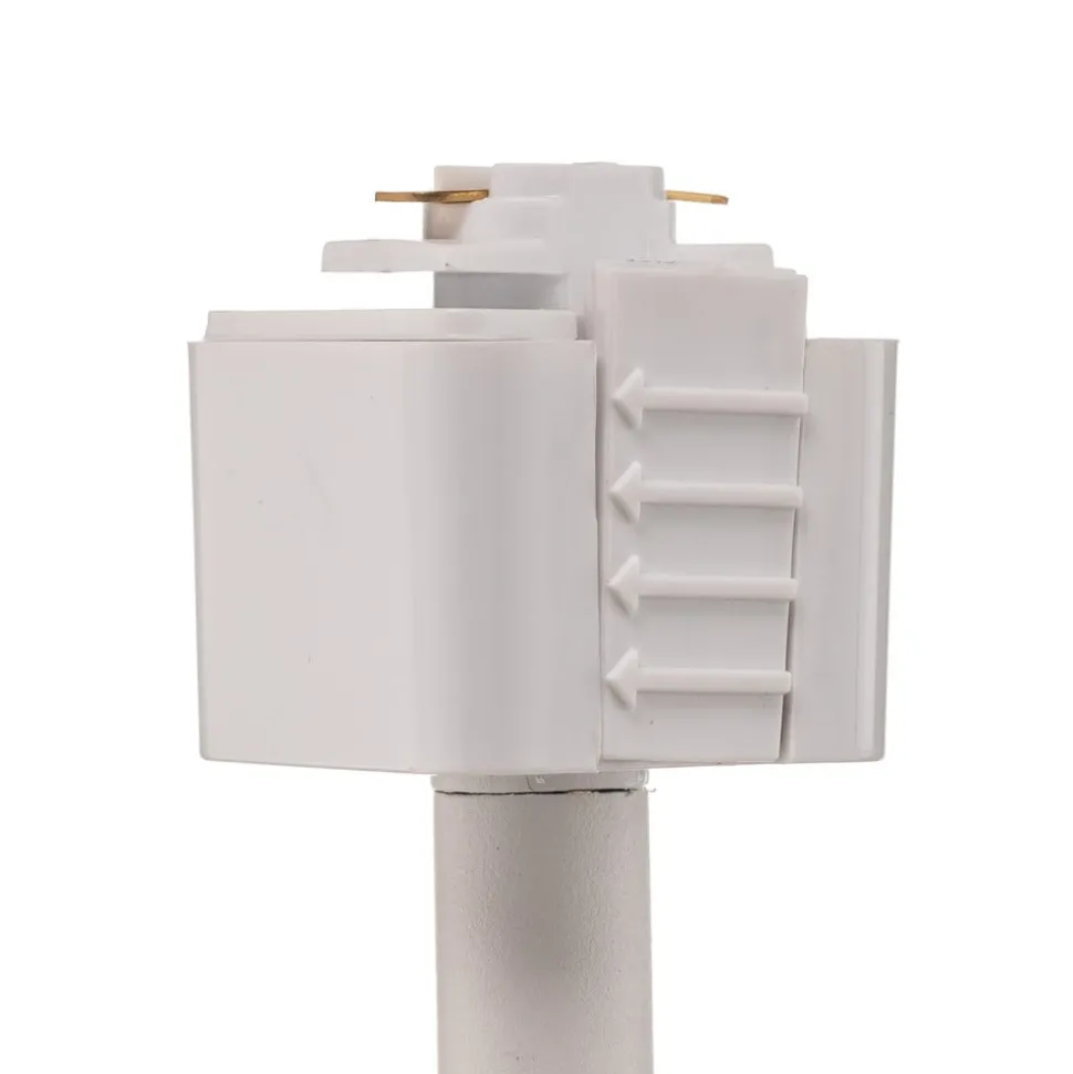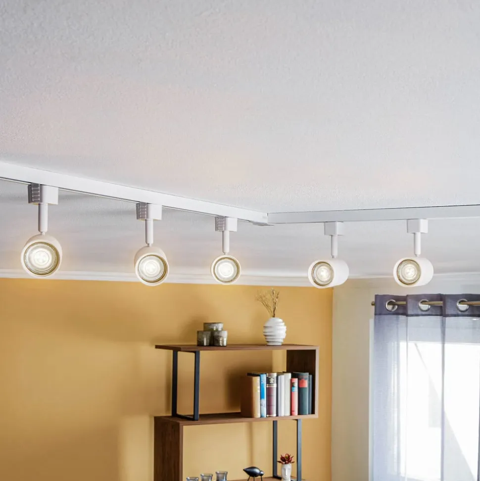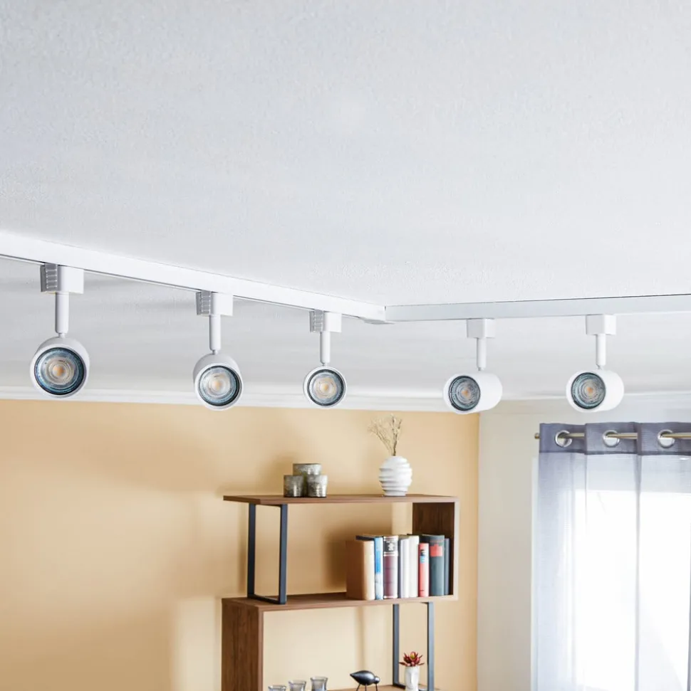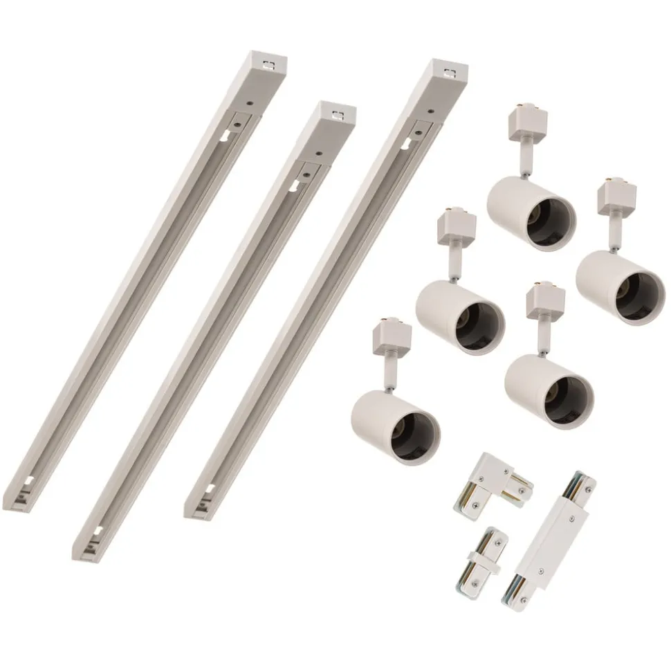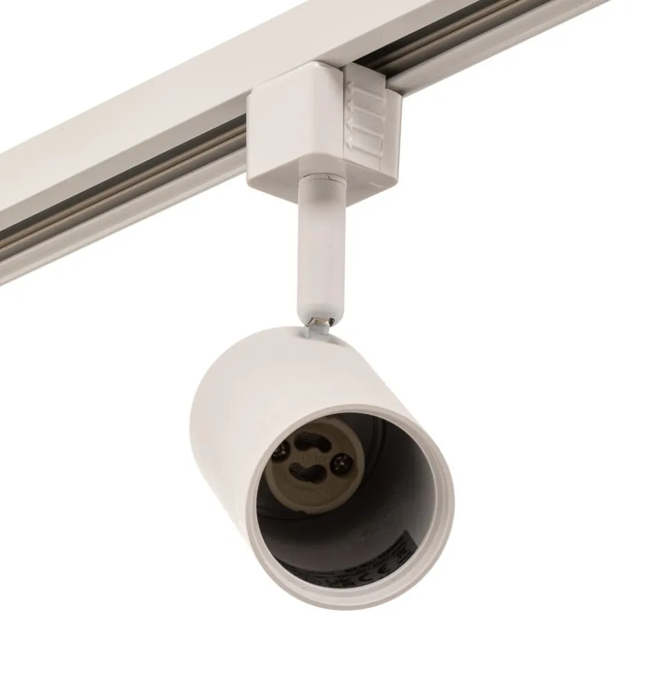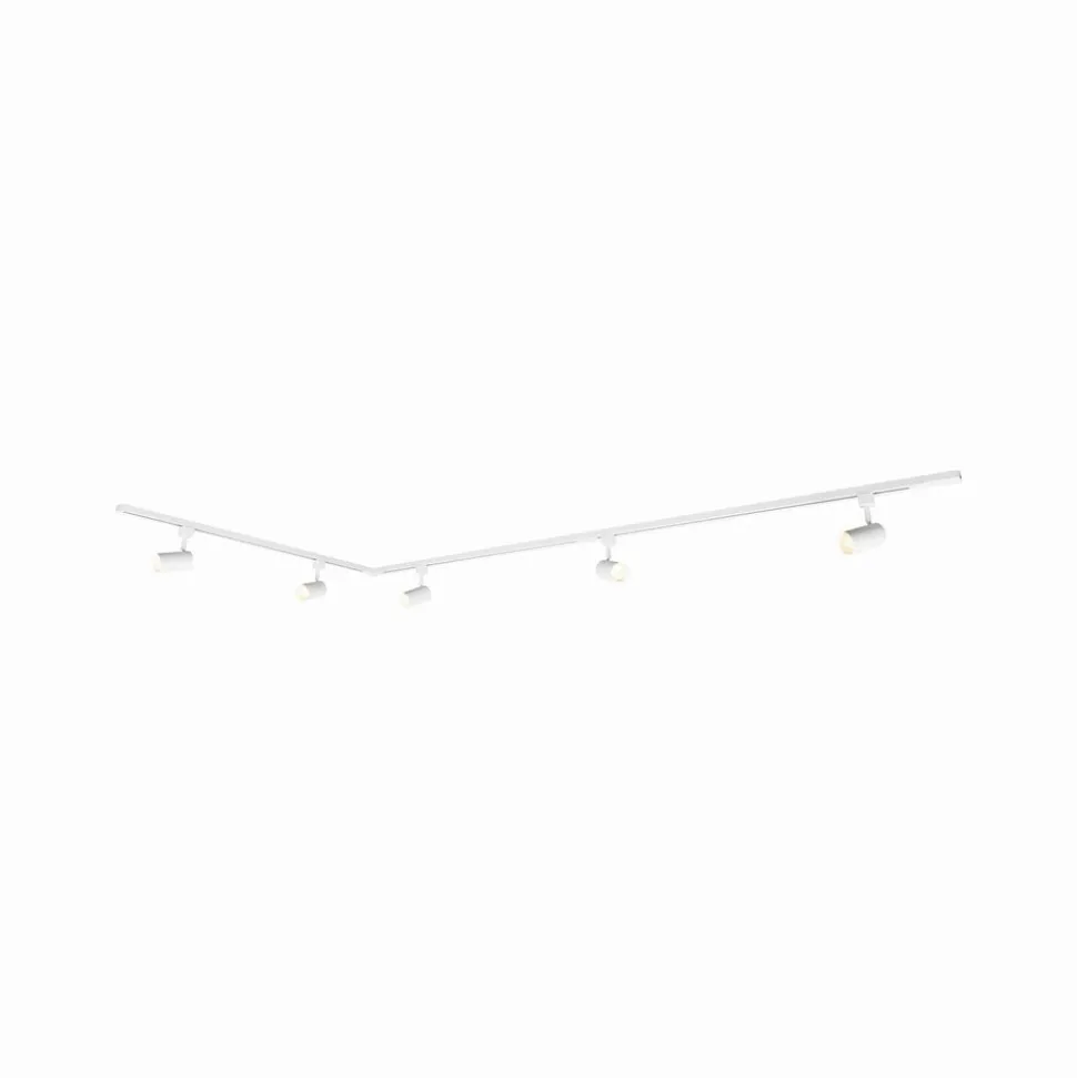 Jorell 1-fase railsysteem in wit met drie sporen Jorell is een compleet 1-fase railsysteem dat zowel privé als commercieel kan worden gebruikt en is uitgerust met drie sporen, vijf cilindrische spots, een voeding, een eindkap en twee I-connectoren en een L-connector. Dit betekent dat de rupsbanden ook om hoeken kunnen worden gemonteerd. De vijf spots kunnen naar wens worden aangesloten op de rails en kunnen worden voorzien van reflectorlampen naar keuze, met verschillende lichtkleuren of brede en smalle stralingshoeken – afhankelijk van waar het railsysteem voor wordt gebruikt en welk doel het moet dienen. De witte afwerking en de cilindrische spots zien er zeer tijdloos uit.