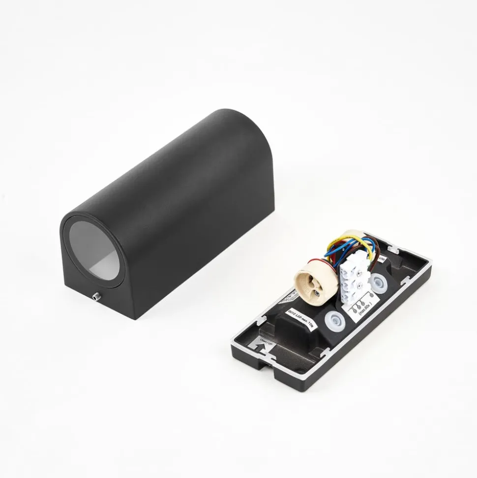 Weerbestendige buitenwandlamp Tetje van zwart aluminium in een cilindrische vorm en praktische set van 4 De buitenwandlamp Tetje biedt betrouwbare verlichting voor buitenruimtes en maakt indruk met zijn eenvoudige ontwerp. De behuizing heeft een buisvormig uiterlijk en wordt geleverd in een eenvoudige zwarte kleur. Met een beschermingsgraad van IP65 is de Tetje buitenwandlamp stofdicht en beschermd tegen waterstralen, waardoor het een weerbestendige metgezel is voor buitenruimtes. Tetje kan gecombineerd worden met andere lampen uit de serie om een harmonieuze totaalindruk te creëren en de architecturale stijl van een huis te accentueren. Ze wordt ook geleverd in een praktische set van 4.