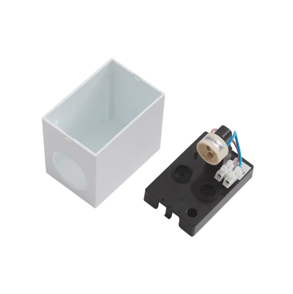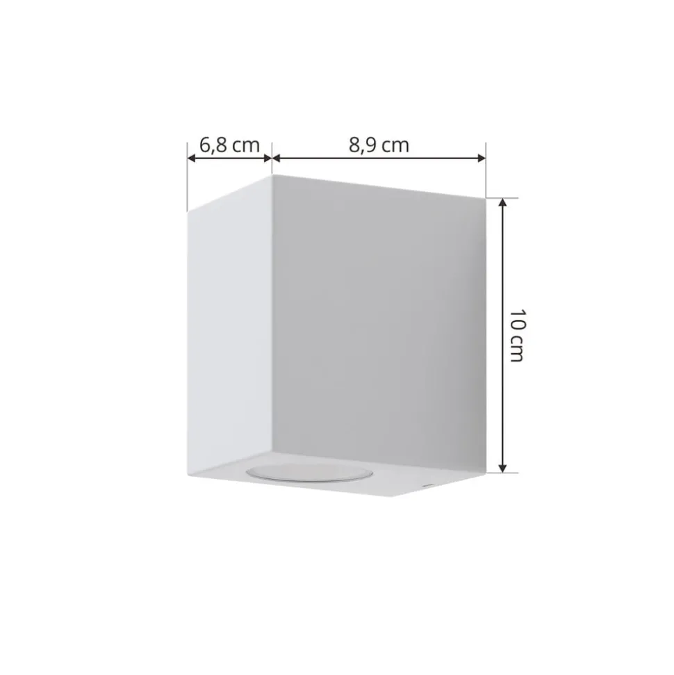 Witte buitenwandlamp Irfan – de hoekige metgezel voor buiten Irfan is een buitenwandlamp die indruk maakt met haar eenvoudige uiterlijk. De behuizing is gemaakt van kunststof en heeft een witte kleurstelling. De hoekige behuizing heeft een opening aan de onderkant waaruit het gegenereerde licht komt. De Irfan buitenwandlamp kan worden uitgerust met GU10 lampen en heeft een beschermingsgraad IP44, waardoor ze aantoonbaar beschermd is tegen spatwater. De combinatie met andere lampen uit de serie is ongecompliceerd en creëert een harmonieus totaalbeeld in de buitenruimte.