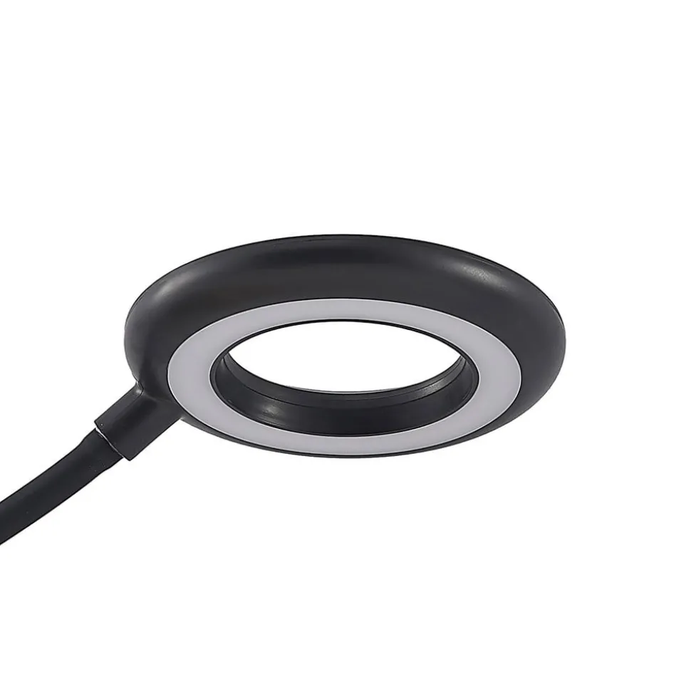 Traploos dimbare Harumi LED klemlamp met beweegbare lampenarm Harumi is een kleine LED klemlamp uitgerust met uitstekende LED technologie. Zijn ringvormige lampenkop heeft permanent geïnstalleerde, krachtige LED’s waarvan de lichtsterkte naar wens individueel kan worden geregeld. Deze economische lamp kan worden opgeladen met een USB-kabel en overal worden gebruikt dankzij de geïntegreerde klem.