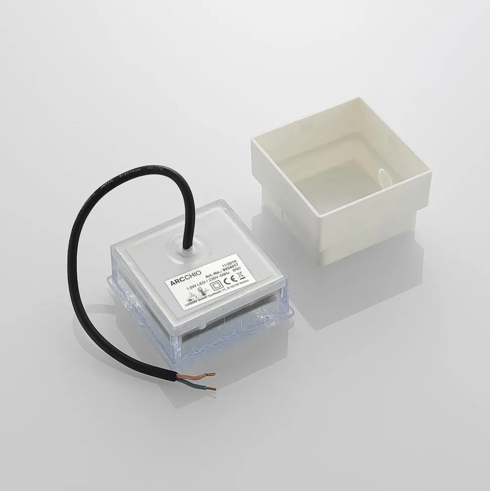 Ewgenie vierkante LED grondspot inbouwlamp, beloopbaar en stootvast Met een ondiepe inbouwdiepte van slechts 6 cm kan de warmwitte LED grondspot inbouwlamp niet worden omvergereden, maar kan er tot 500 kg overheen worden gelopen. Ze is daarom geschikt voor het verlichten van patio’s of tuinpaden en overal waar geen verkeer is. De Ewgenie-armatuur heeft de hoogste stootvastheidsklasse IK10, waardoor het toch een robuuste vloerlamp is. Doorvoerbedrading is hier echter niet mogelijk en de maximale oppervlaktetemperatuur is 45° Celsius.