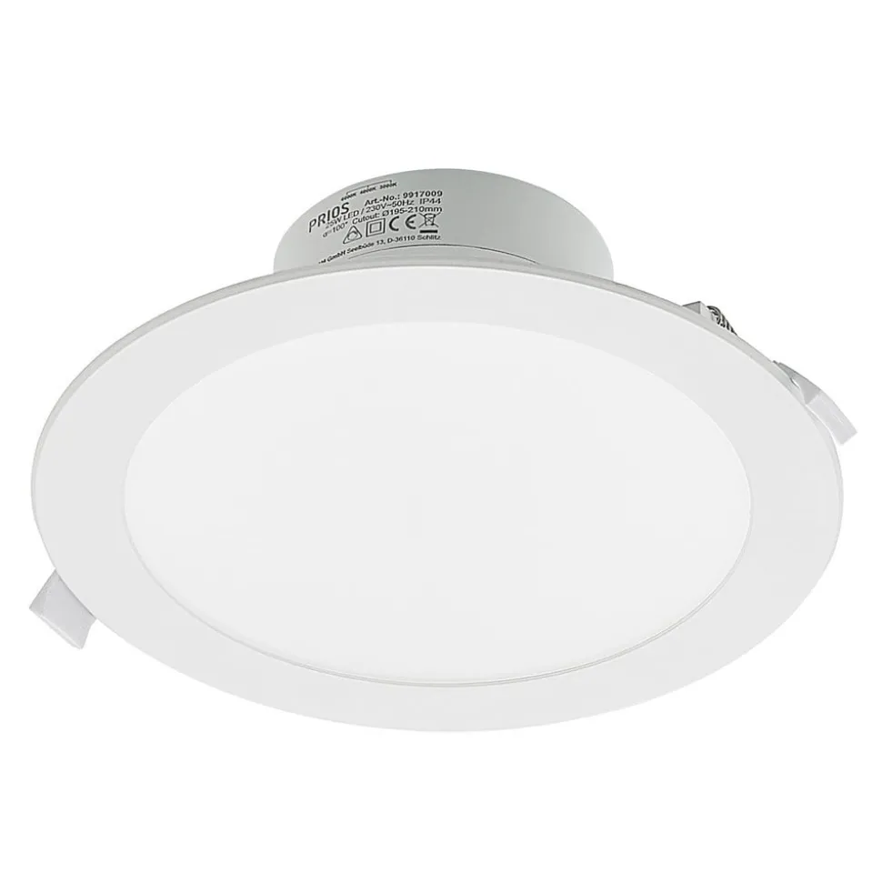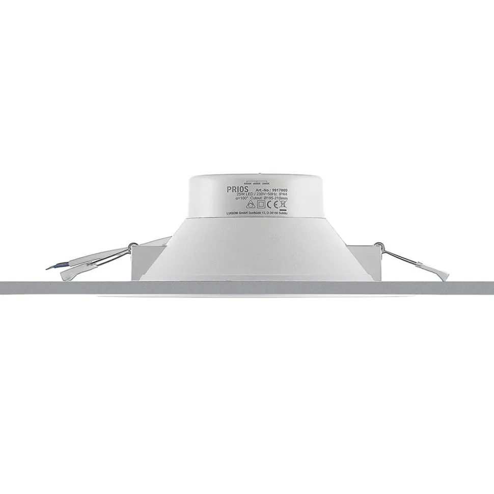 Prios LED inbouwspot Rida, wit. Ø 23 cm, 25W, CCT, IP44