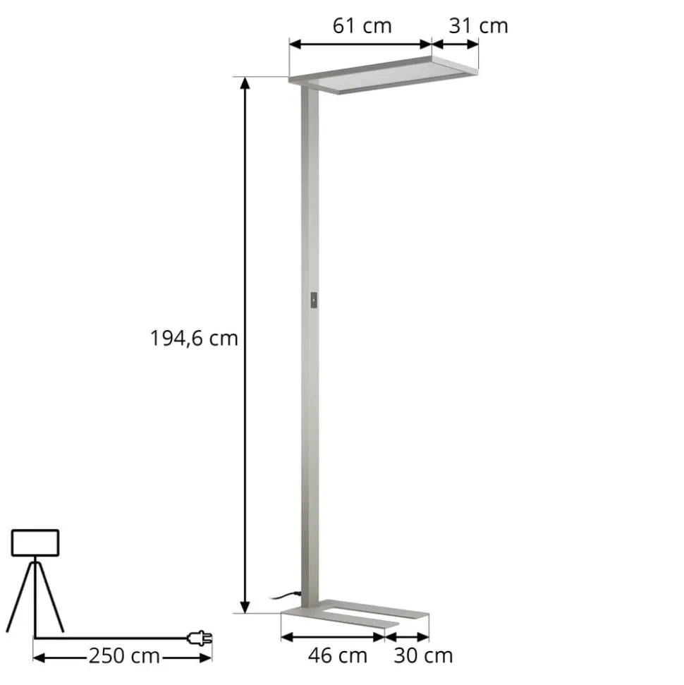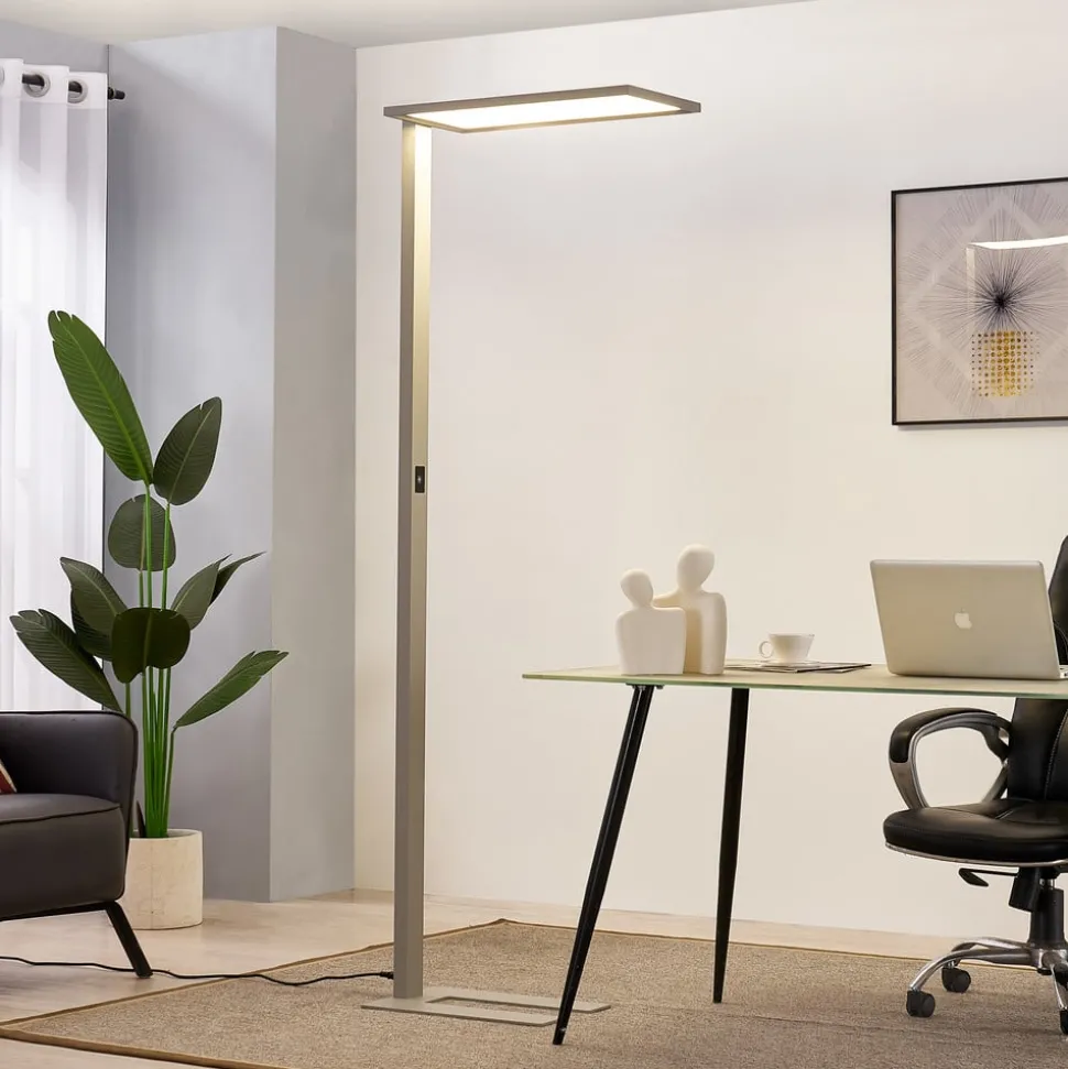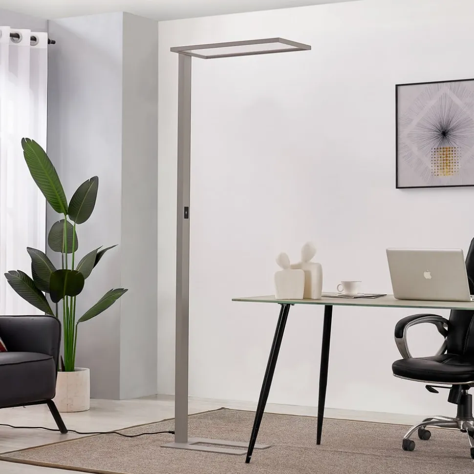 Taronis LED kantoor vloerlamp met touchdimmer en direct-indirecte lichtverdeling Deze LED vloerlamp straalt zijn licht zowel naar boven als naar beneden uit, waardoor een aangenaam licht rondom ontstaat om in te werken en heeft krachtige LED’s die het licht gelijkmatig naar boven en beneden uitstralen en als efficiënt kunnen worden beschouwd. De lichtsterkte kan naar wens worden aangepast via een geïntegreerde touchdimmer en het universeel witte licht is ideaal voor geconcentreerd werken. De U-vormige voet is gemakkelijk rond tafelpoten te plaatsen – universeel wit licht – met touchdimmer – U-vormige voet – direct/indirect licht
