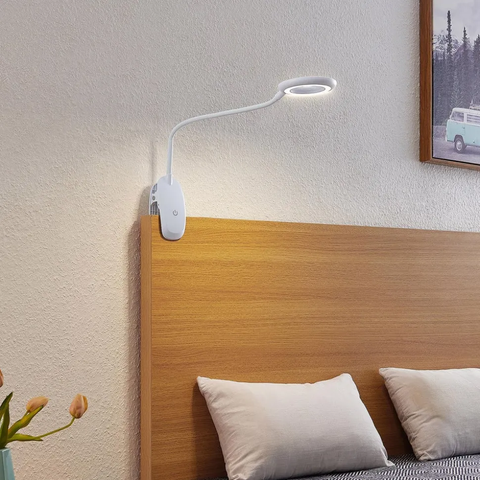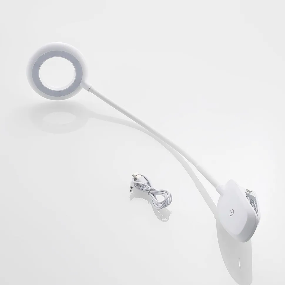 Eenvoudige LED klemlamp Harumi met flexibele lampenarm, USB De LED klemlamp Harumi kan bijna overal worden gebruikt en kan daarom ook flexibel in huis worden gebruikt. Zijn ringvormige lampenkop en slanke, flexibele lampenarm domineren het moderne ontwerp, dat zeer goed harmonieert met het hedendaagse interieurontwerp. Deze lamp kan worden opgeladen met een USB-kabel en is ook traploos dimbaar, zodat hij aan alle eisen voldoet.
