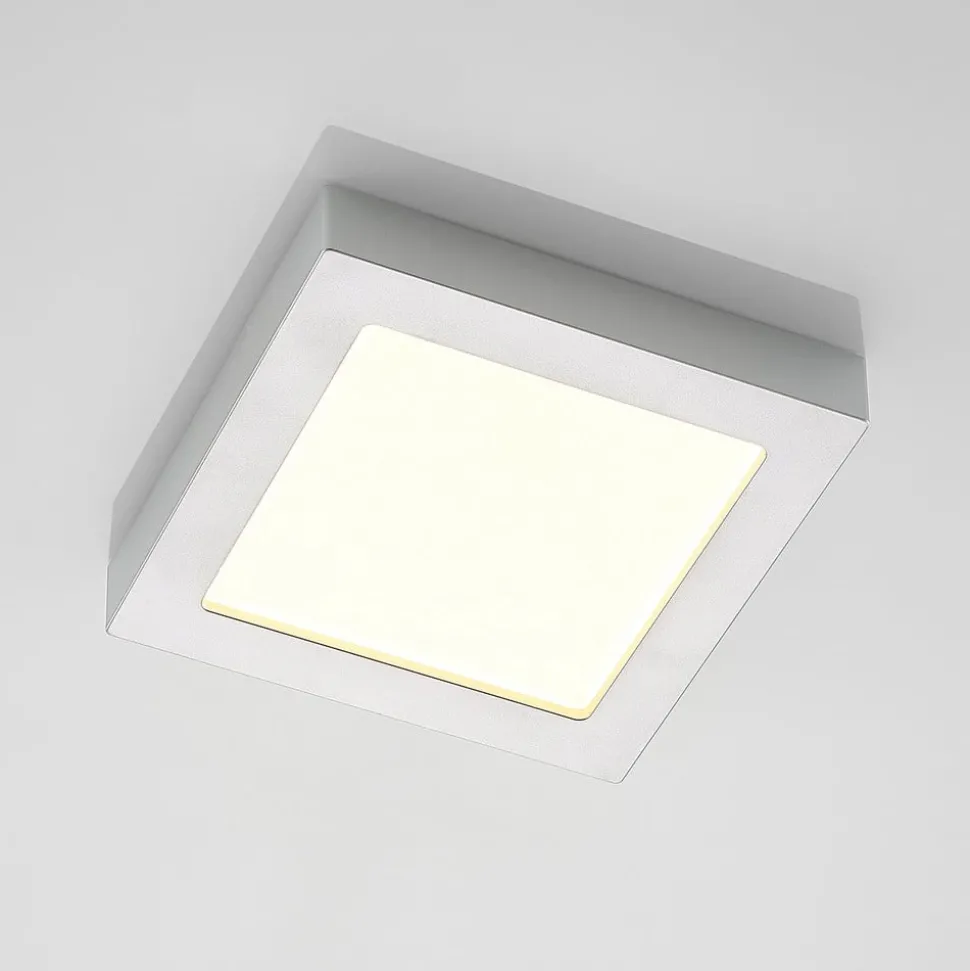 Zilveren vochtbestendige LED plafondlamp Alette, dimbaar, vooraf instelbare lichtkleur Alette is uitgerust met krachtige LED lampen die niet alleen helder en efficiënt zijn, maar de lichtkleur van deze plafondlamp kan ook vooraf worden ingesteld. Hiervoor zit er een DIP-schakelaar op de behuizing. Die lichtbron kan ook worden gedimd als er een externe dimmer beschikbaar is om de helderheid te regelen. Will je de LED plafondlamp in een badkamer gebruiken, dan is dat geen probleem, want de IP44 beschermingsgraad geeft aan dat de plafondlamp voldoende beschermd is tegen vocht. Het design met het zilveren frame en de vierkante Form heeft een aangenaam eenvoudige en tijdloze uitstraling – Vooraf instelbare lichtkleur (DIP-schakelaar) – Dimbaar – Verhoogde beschermingsgraad voor gebruik in vochtige ruimtes