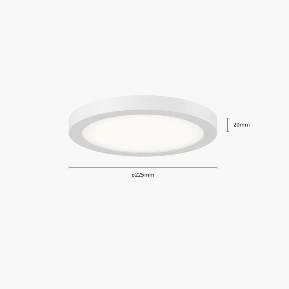Eenvoudige LED plafondlamp Aureka met geïntegreerde radarsensor en instelbare lichtkleur, geschikt voor inbouw- en opbouwmontage Aureka overtuigt door haar eenvoudige ontwerp en kan, zo rond en wit als ze is, zowel privé als in een commerciële omgeving worden gebruikt. De LED plafondlamp is ook een lichtbron met een hoog niveau van functionaliteit, zodat de verlichting optimaal kan worden aangepast aan de omstandigheden ter plaatse. Aureka kan niet alleen aan het plafond worden gemonteerd, maar kan ook worden gebruikt als extra platte LED inbouwlamp en de lichtkleur kan vóór installatie worden ingesteld met een DIP-schakelaar. De sensor blijkt ook erg praktisch te zijn, omdat er geen lichtschakelaar nodig is om de armatuur in te schakelen – de aanwezigheid van een persoon is voldoende. Het bereik van de bewegingsmelder is 4 – 6 meter en de lichtduur is 40 seconden. Installatiediameter: – Variant 1 (22,5 cm): 6,5 cm – 21 cm – Variant 2 (33 cm): 6,5 cm – 31 cm