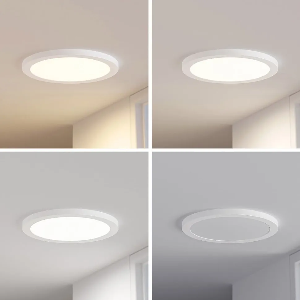 Eenvoudige LED plafondlamp Aureka met geïntegreerde radarsensor en instelbare lichtkleur, geschikt voor inbouw- en opbouwmontage Aureka overtuigt door haar eenvoudige ontwerp en kan, zo rond en wit als ze is, zowel privé als in een commerciële omgeving worden gebruikt. De LED plafondlamp is ook een lichtbron met een hoog niveau van functionaliteit, zodat de verlichting optimaal kan worden aangepast aan de omstandigheden ter plaatse. Aureka kan niet alleen aan het plafond worden gemonteerd, maar kan ook worden gebruikt als extra platte LED inbouwlamp en de lichtkleur kan vóór installatie worden ingesteld met een DIP-schakelaar. De sensor blijkt ook erg praktisch te zijn, omdat er geen lichtschakelaar nodig is om de armatuur in te schakelen – de aanwezigheid van een persoon is voldoende. Het bereik van de bewegingsmelder is 4 – 6 meter en de lichtduur is 40 seconden. Installatiediameter: – Variant 1 (22,5 cm): 6,5 cm – 21 cm – Variant 2 (33 cm): 6,5 cm – 31 cm