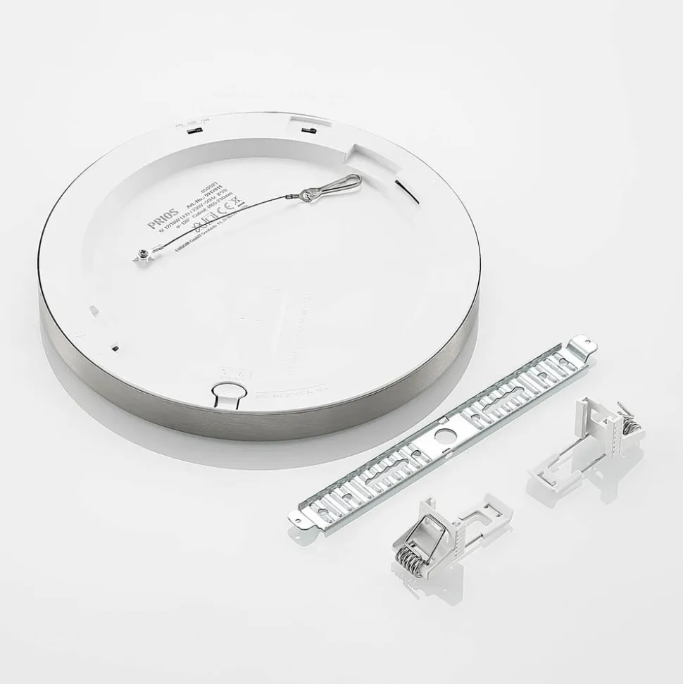 Prios LED plafondlamp Aureka, Ø 23 cm, zilver, metaal