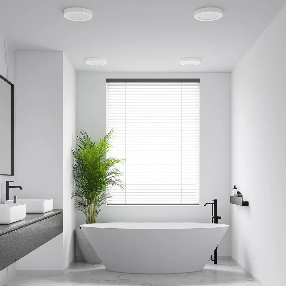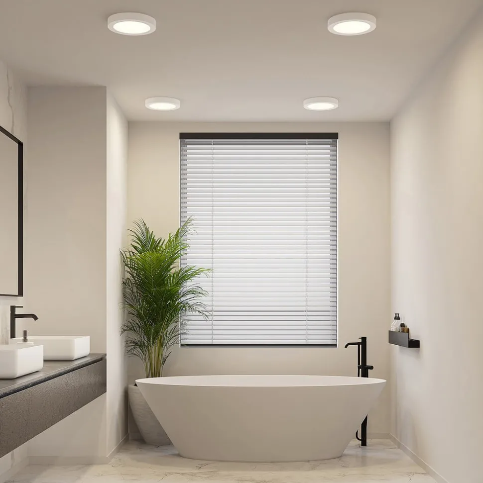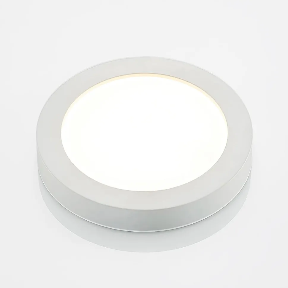 Ronde LED plafondlamp Edwina met instelbare lichtkleur, IP44 – in een praktische set van 10 Deze plafondlamp met vast geïnstalleerde LED’s is een eenvoudige lichtbron voor talloze gelegenheden, die zowel privé als zakelijk kan worden gebruikt. De ronde vorm en het witte oppervlaktedesign zien er bijzonder tijdloos uit en Edwina is ook technisch geschikt voor vele locaties en toepassingen, omdat de lichtkleur voor installatie vooraf kan worden ingesteld met een geïntegreerde DIP-schakelaar op de behuizing en de beschermingsgraad maakt het ook mogelijk om de lamp te gebruiken in vochtige ruimtes, omdat de LED plafondlamp voldoende is afgedicht om te voorkomen dat spatwater binnendringt. Met de brede stralingshoek kunnen ook grotere oppervlakken goed worden verlicht en de helderheid van het licht kan indien nodig ook worden aangepast via een externe dimmer – IP44, voor badkamers en vochtige ruimtes – Lichtkleur kan vooraf worden ingesteld via DIP-schakelaar – Dimbaar – Geleverd in tien versies