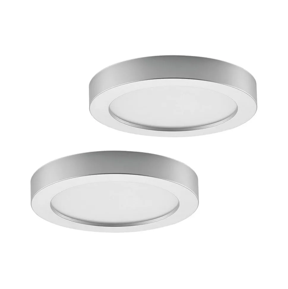 Prios LED plafondlamp Edwina, zilver, 25 cm, set van 2