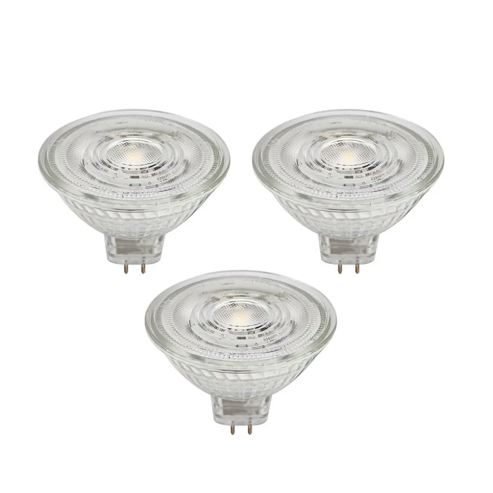 GU5.3 LED reflectorlamp van glas, transparant in een praktische set van 3 Deze LED reflectorlamp is geschikt voor talloze lampen met een GU5.3 fitting. Hij is gemaakt van glas en kan flexibel worden gebruikt dankzij het transparante kleurontwerp – niet dimbaar – 4,3W – 345 lumen – stralingshoek 36° – geleverd in een set van 3