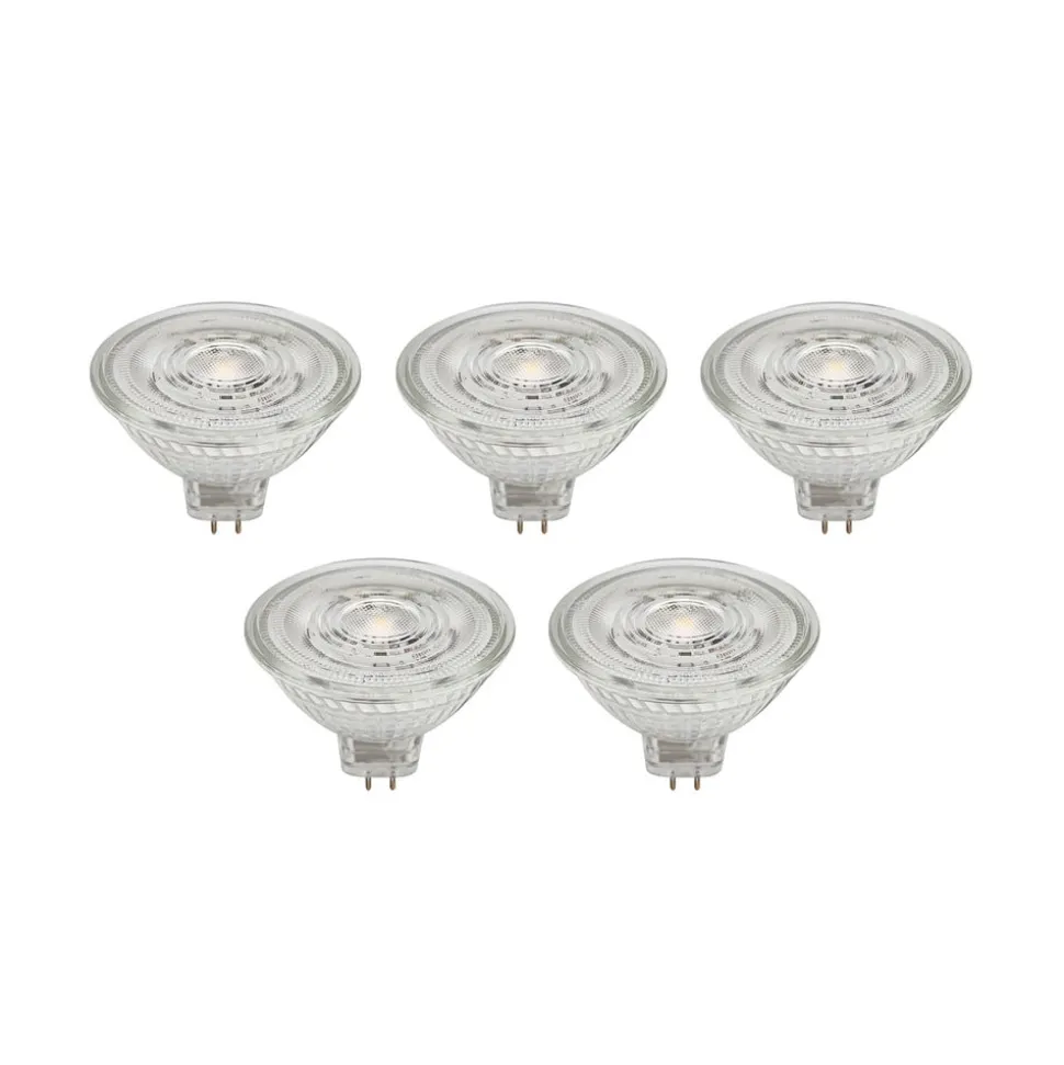 GU5.3 LED reflectorlamp van glas, transparant in een praktische set van 5 Deze LED reflectorlamp is geschikt voor talloze lampen met een GU5.3 fitting. Hij is gemaakt van glas en kan flexibel worden gebruikt dankzij het transparante kleurontwerp – niet dimbaar – 4,3W – 345 lumen – stralingshoek 36° – geleverd in een set van 5