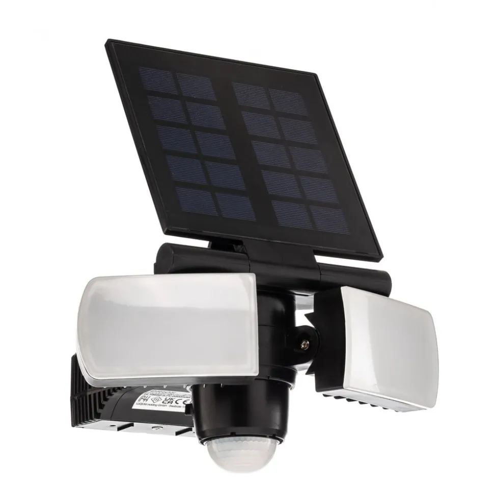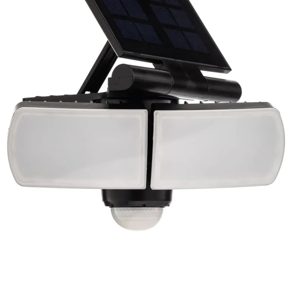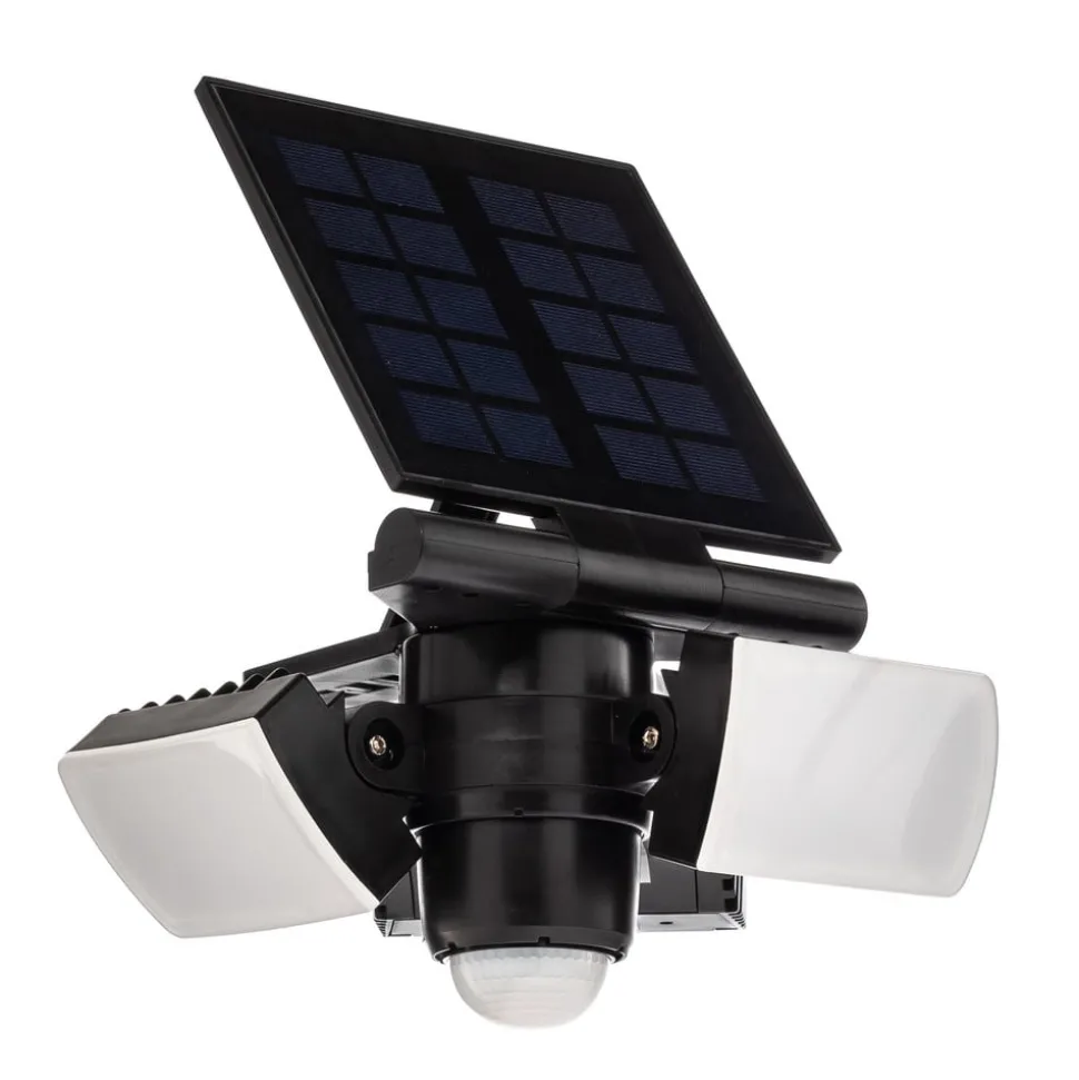 LED wandspot op zonne-energie Wrenley van kunststof met bewegingsmelder Wrenley is een praktische metgezel voor buiten die helderheid biedt zonder elektriciteitskosten dankzij de werking op zonne-energie. De LED wandspot op zonne-energie heeft een pragmatisch ontwerp van zwart kunststof. Hij heeft ook witte diffusors waarachter de permanent geïnstalleerde LED’s zich bevinden en warmwit, niet-verblindend licht genereren. Dit verlicht de buitenruimte op een aangename manier en zet een huis of oprit perfect in scène, zelfs ’s nachts. De LED wandspot op zonne-energie heeft ook een paneel dat boven de lichtbron zit en de benodigde stroom genereert. Technische gegevens – incl. 2.000 mAh Li-ion 3,7 V batterij – polykristallijn zonnepaneel – bewegingsmelder detectiehoek 110° – bewegingsmelder detectiebereik 10 m