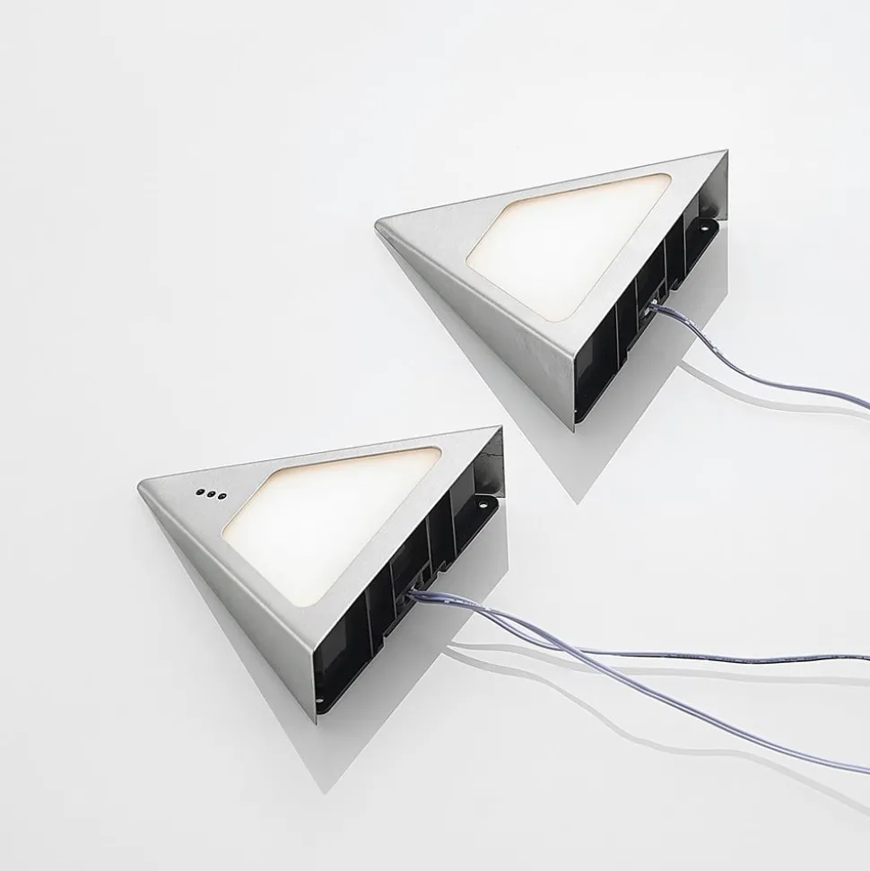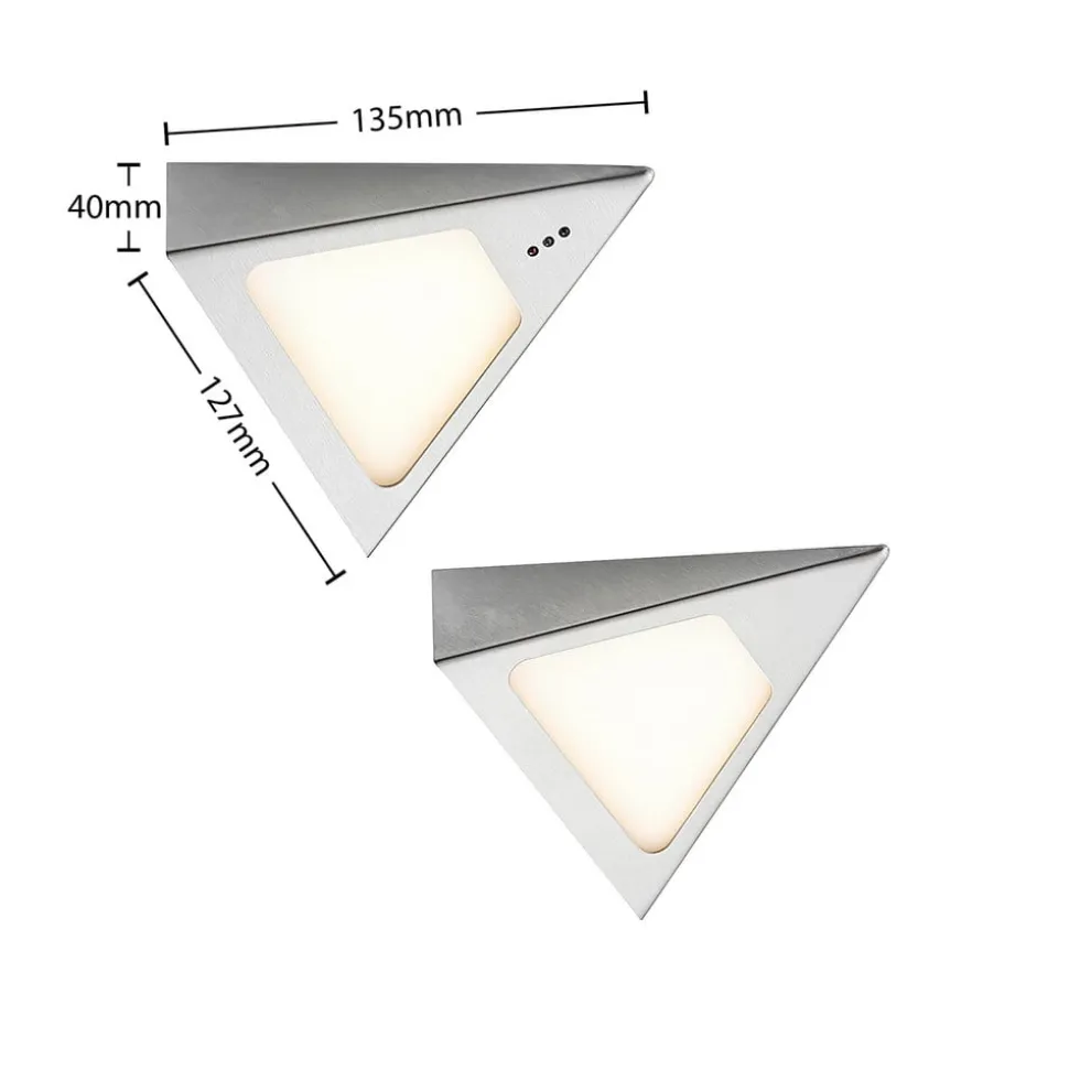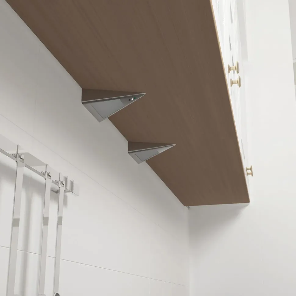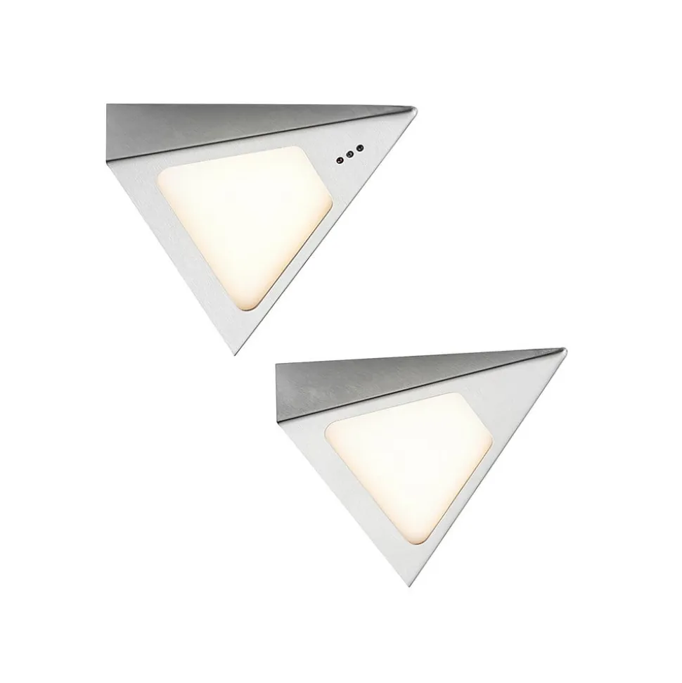 De Odia LED onderkastarmatuur bestaat uit twee armaturen die met elkaar verbonden zijn door middel van een kabel. Als een meubelstuk in een speciaal licht moet worden gezet, ondersteunt het dit met succes. Binnenin de piramidevormige elementen bevinden zich LED’s die met hun warmwitte licht een perfecte sfeer creëren. De netstekker is verbonden met het eerste element met een kabel van twee meter, die ook verbonden is met het tweede element. Door de lengte van de kabel is een flexibele montage van de armatuur mogelijk. De Odia LED-onderkastlamp kan met gebaren worden bediend en kan met een simpele handbeweging worden in- en uitgeschakeld. Hij is ook traploos dimbaar door de dimmer gesloten te houden. De voedingseenheid is bijzonder plat, zodat zij moeiteloos achter kasten kan worden gemonteerd.