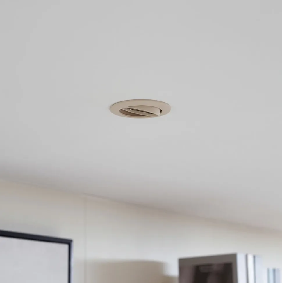 Prios plafond inbouwlamp Fibur, beige, aluminium, Ø 8,2 cm