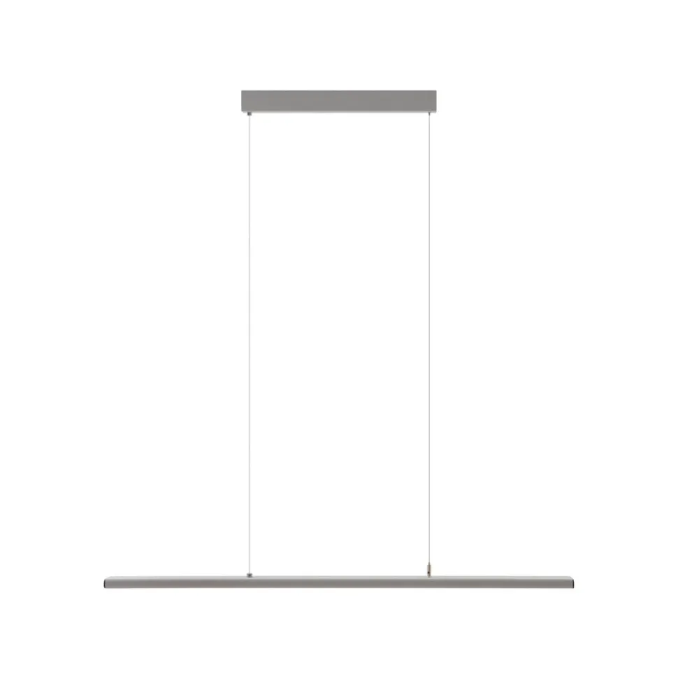 Slanke LED kantoor hanglamp Zyair in een elegant ontwerp gemaakt van zilver aluminium – perfect voor op kantoor Zyair maakt indruk met zijn slanke en langwerpige ontwerp, dat een uitgebreide verlichting garandeert. Ze bestaat uit een stut die bevestigd is aan twee ophangingen, die op hun beurt bevestigd zijn aan een compacte plafondhouder. De LED hanglamp Zyair heeft permanent geïnstalleerde LED’s die een universeel wit licht genereren dat ideaal is voor het verlichten van een kantoor. Deze LED’s kunnen ook worden gedimd met DALI voor een flexibele helderheid. Indien gewenst kan de Zyair LED lamp ook worden gecombineerd met andere armaturen uit de serie om een harmonieuze totaalindruk te creëren – UGR < 19 – IK02 – SDMC: 3