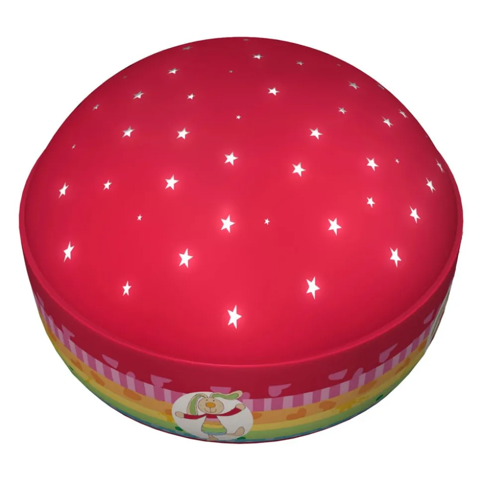 Decoratief en batterijgevoed is de Rainbow Rabbit projectie nachtverlichting, die sterren kan projecteren in de hele kamer. Hij is uitgerust met een aanraaksensor voor het in-/uitschakelen en een automatische uitschakeling na 45 minuten. Dankzij de geïntegreerde LED-kleurenwisselaar krijgen de sterren heel andere kleuren, waardoor elke kinderkamer betoverd wordt. Batterijen zijn niet inbegrepen.