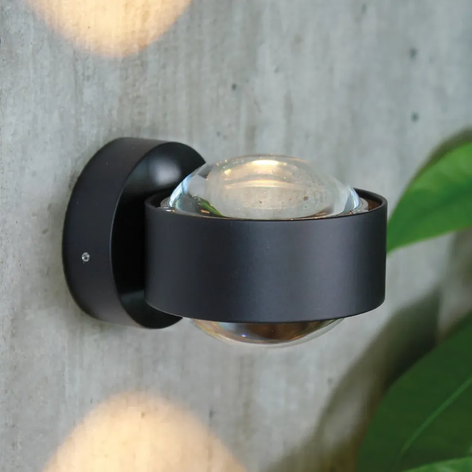 Minimalistische wandlamp Puk Mini Wall met twee heldere lenzen De Puk Mini Wall wandlamp van Top Light is een bekende klassieker die ondanks het eenvoudige ontwerp punten weet te scoren. De hoogwaardige metalen behuizing heeft een ronde vorm en is aan de boven- en onderkant voorzien van een heldere glazen lens. Kenmerkend voor deze lenzen is de scherp gedefinieerde lichtkegel die op de muur verschijnt. Hierdoor ontstaat een naar boven en beneden gericht licht dat een aangename woonsfeer creëert en zorgt voor een goede kamerverlichting zonder enige verblinding. Dankzij de geaccentueerde en gerichte verlichting wordt de focus van de kijker op een geselecteerd gebied gericht en kan zo een individueel ruimteconcept tot zijn recht laten komen. Om de verlichting een kleurrijk accent te geven, is er de mogelijkheid om verschillende kleurenfilters aan te schaffen, die eenvoudig onder de lenzen worden geplaatst.