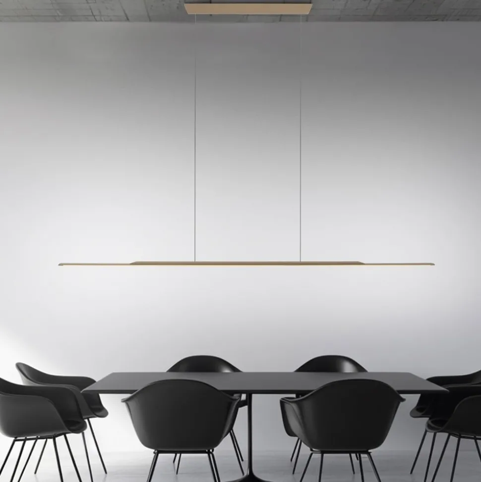 Surface LED hanglamp met warmwit licht – extern dimbaar De Surface LED hanglamp is ideaal voor directe tafelverlichting in moderne woonkamers en lounges. Ze is ontworpen als een balk hanglamp met een slanke, rechthoekige behuizing van aluminium. De onderkant is voorzien van warmwitte LED’s achter een gesatineerde acryl diffuser. Hun helderheid kan extern worden aangepast met een dimmer van Tronic. De lengte van de twee ophangkabels kan vóór installatie worden aangepast.