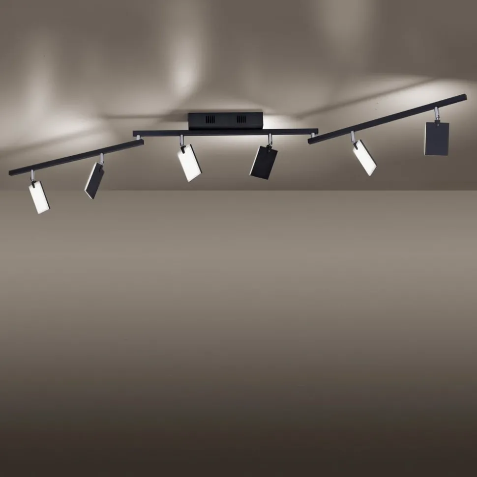 PURE Mira LED plafondlamp met zes verstelbare lichtelementen, helderheid en kleurtemperatuur instelbaar via afstandsbediening