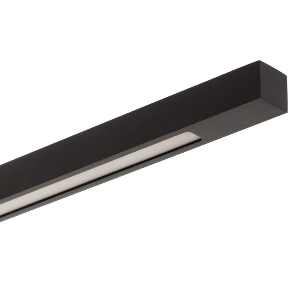 Tolu zwarte LED hanglamp, in hoogte verstelbaar en extern dimbaar, hoogwaardig product gemaakt in Duitsland Tolu is een armatuur die uitsluitend bestaat uit een smalle lichtstaaf in een slank design, die aan de onderkant is bedekt met een doorlopende LED strip en een zeer fijne, hoogwaardige afwerking heeft. De zwarte afwerking is zorgvuldig met de hand verfijnd en laat fijne penseelstreken op het oppervlak zien. Het heeft een opvallende uitstraling en een koele elegantie die bijzonder goed staat in moderne interieurs. Het armatuur onderscheidt zich ook in het algemeen door zijn zeer hoogwaardige, eersteklas afwerking, waardoor het kan bogen op het label “made in Germany” en biedt efficiënt, flikkervrij licht dat indien nodig ook in helderheid kan worden aangepast met een externe dimmer (faseaansnijding aan de voor- of achterkant) en heeft ook een uitstekende kleurweergave met een CRI-waarde van meer dan 90, zodat de kleuren zo natuurgetrouw mogelijk worden weergegeven, zelfs zonder daglicht.