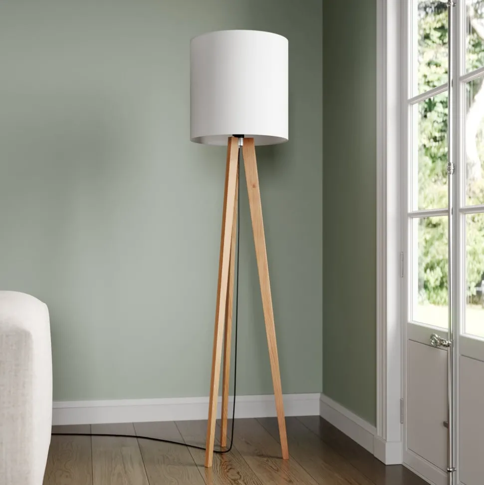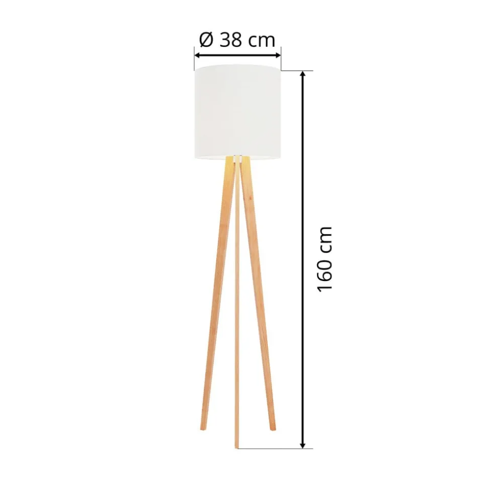 Quitani vloerlamp Nida, houten frame, witte kap